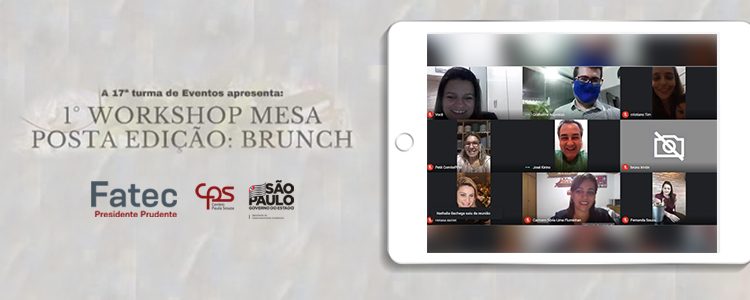 No dia 11 de maio de 2021 foi realizado o 1º Workshop Mesa Posta: Especial Brunch. O evento foi uma realização da 17ª turma do curso Superior de Tecnologia em Eventos da Fatec de Presidente Prudente e contou com a presença de importantes profissionais do setor como o cerimonialista Oswaldo Berthy, Paula Lima, proprietária do Buffet Helasa, da sommelière Nanda Souza e de Clóris Maria da Petit Comité aluguel de louças e montagem de mesa posta.