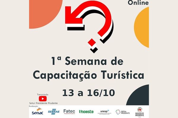 Não perca! 1ª Semana de Capacitação Turística. Evento gratuito e com transmissão online através do Canal no Youtube: Setur Presidente Prudente.