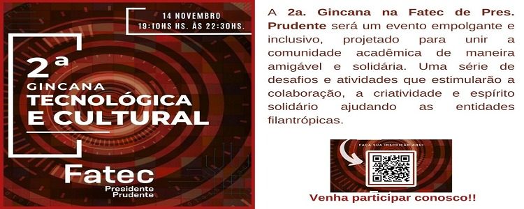 As inscrições para a 2ª Gincana Tecnológica e Cultural da Fatec de Presidente Prudente foram PRORROGADAS!