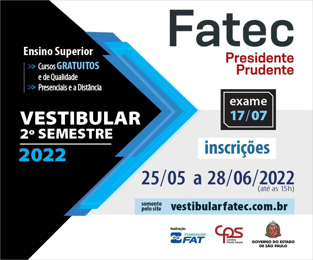As inscrições para o Vestibular da Fatec Prudente para o segundo semestre de 2022, já começaram.