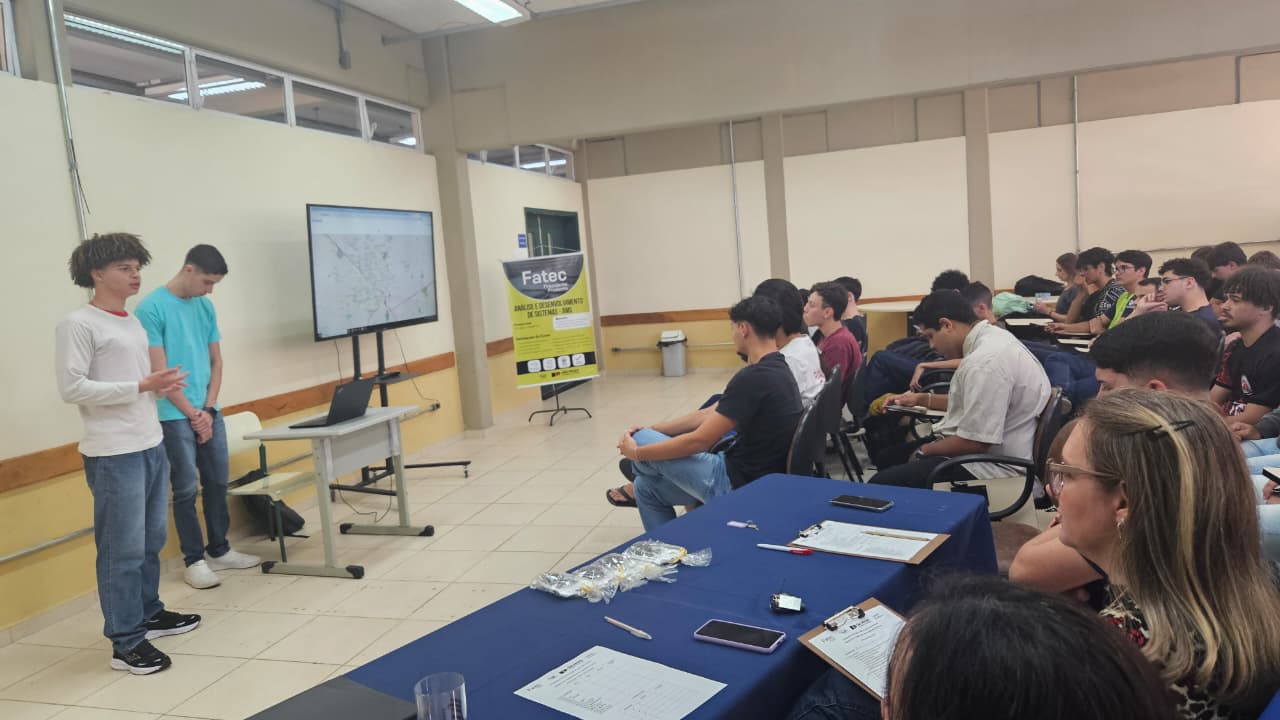 O grande destaque da tarde foi o projeto MapCity, desenvolvido pelos estudantes João Luiz Souza Pereira e Matheus Mendes dos Santos. A plataforma propõe o mapeamento colaborativo de situações irregulares nas cidades, como falhas na iluminação pública, acúmulo de lixo, entulho e buracos nas vias. A proposta une tecnologia e comunidade para transformar os espaços urbanos em ambientes mais limpos e seguros, promovendo melhorias na qualidade de vida da população.