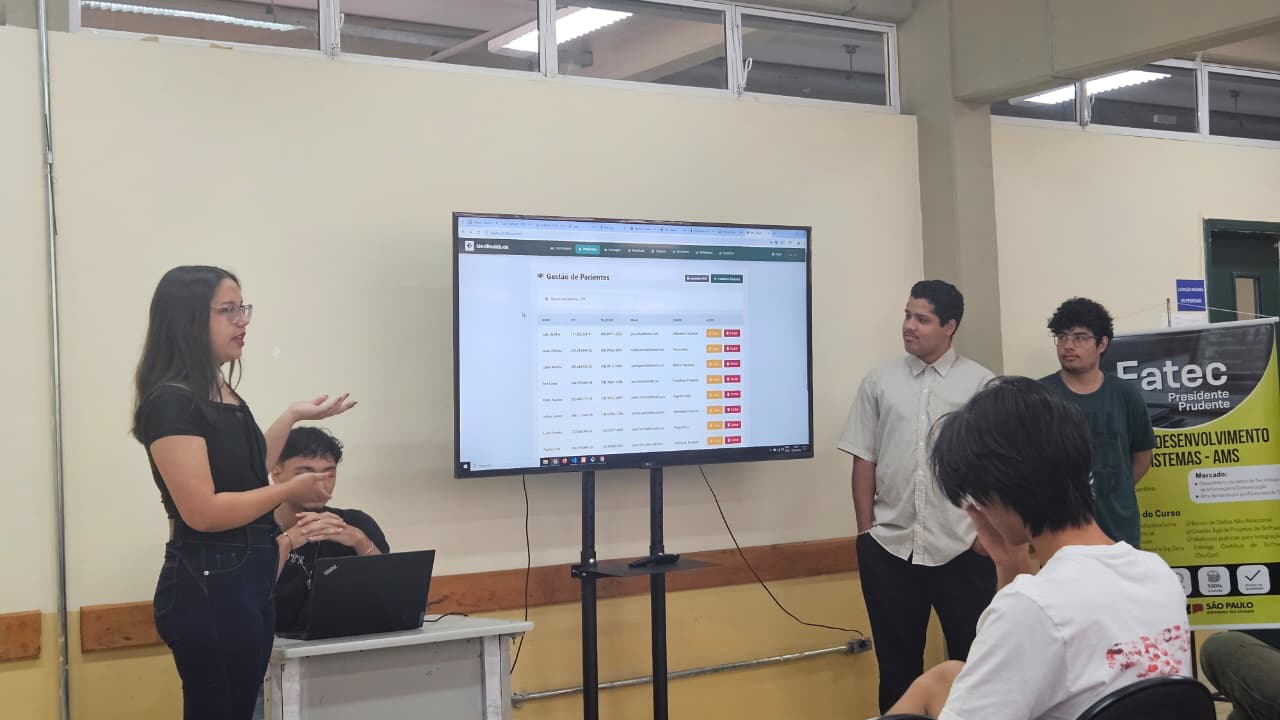 O Tech4Health, desafio interdisciplinar promovido pelo projeto Conexão Acadêmica, chegou à sua etapa final após meses de atividades que integraram teoria e prática no curso de Análise e Desenvolvimento de Sistemas – AMS da Fatec Presidente Prudente. O evento desafiou os alunos a criarem soluções tecnológicas inovadoras voltadas à área da saúde e alinhadas aos pilares ESG – aspectos ambientais, sociais e de governança. Após a fase inicial de geração de ideias (Missão 1) e prototipagem (Missão 2), o desafio avançou para os momentos conclusivos de desenvolvimento, validação e apresentação das soluções.