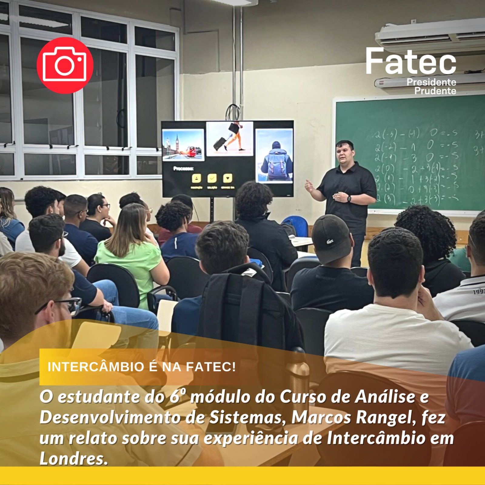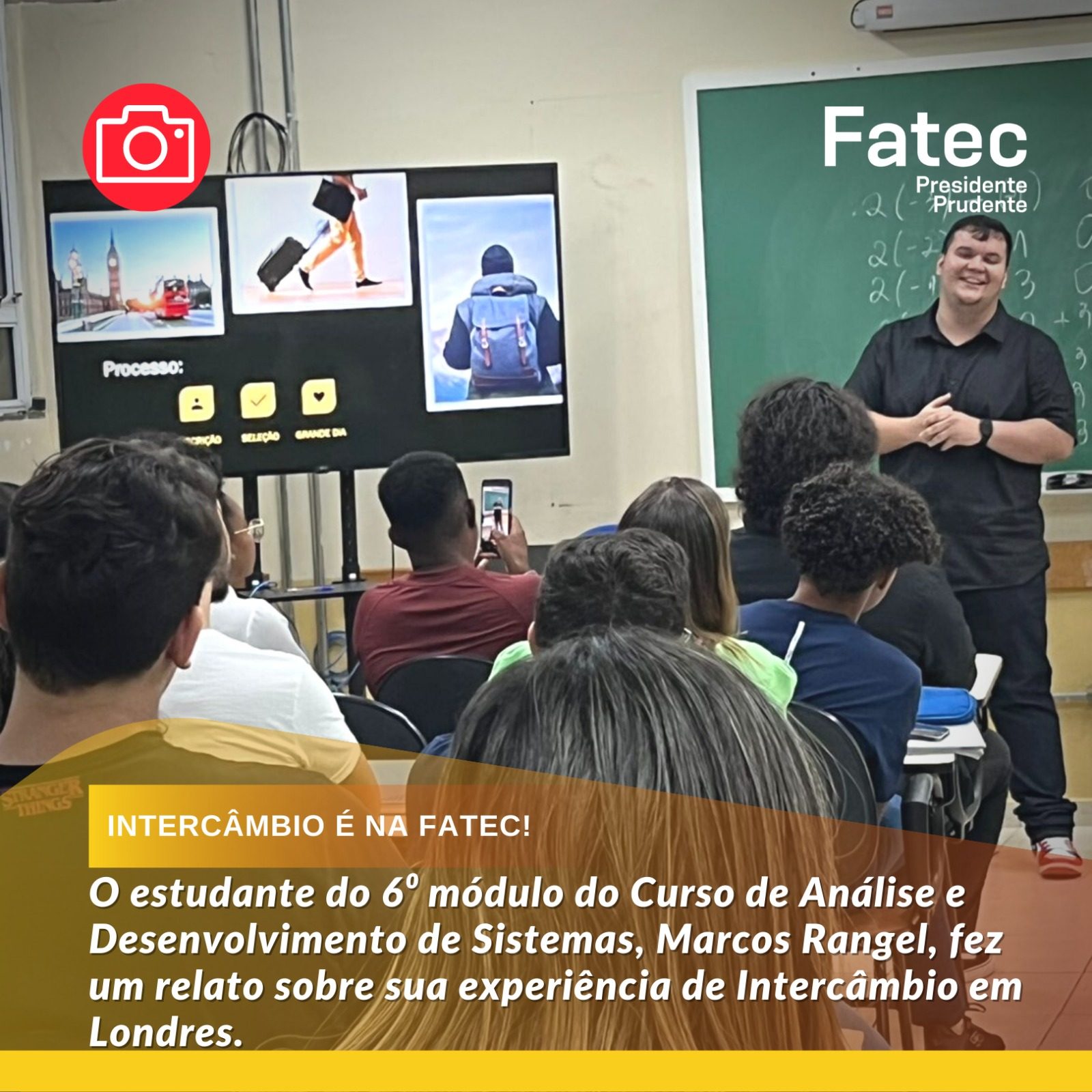 Na última terça-feira (21), o estudante do 6⁰ módulo do Curso de Análise e desenvolvimento de Sistemas, Marcos Rangel Rodrigues Zanoni, fez um relato sobre sua experiência de Intercâmbio em Londres.