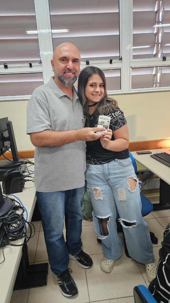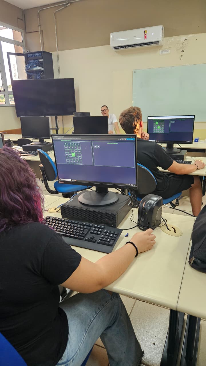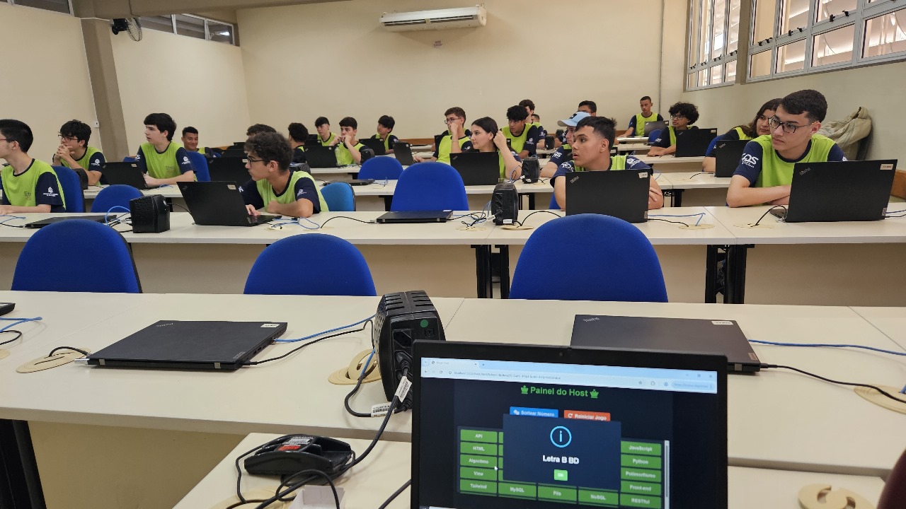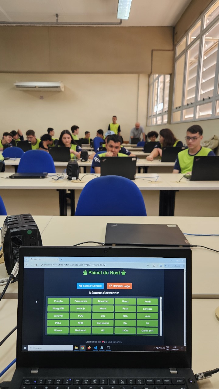 Para encerrar o dia de forma descontraída, os alunos participaram de um bingo digital temático, desenvolvido pelos próprios estudantes do ensino superior. Diferente do bingo tradicional, as cartelas traziam termos da área da programação em vez de números, tornando a atividade mais divertida e interativa. Um dos criadores do jogo, João Pedro, destacou: “Apresentar o trabalho desenvolvido por mim foi uma experiência incrível e enriquecedora. Os alunos estavam bem animados e participativos com o projeto.”