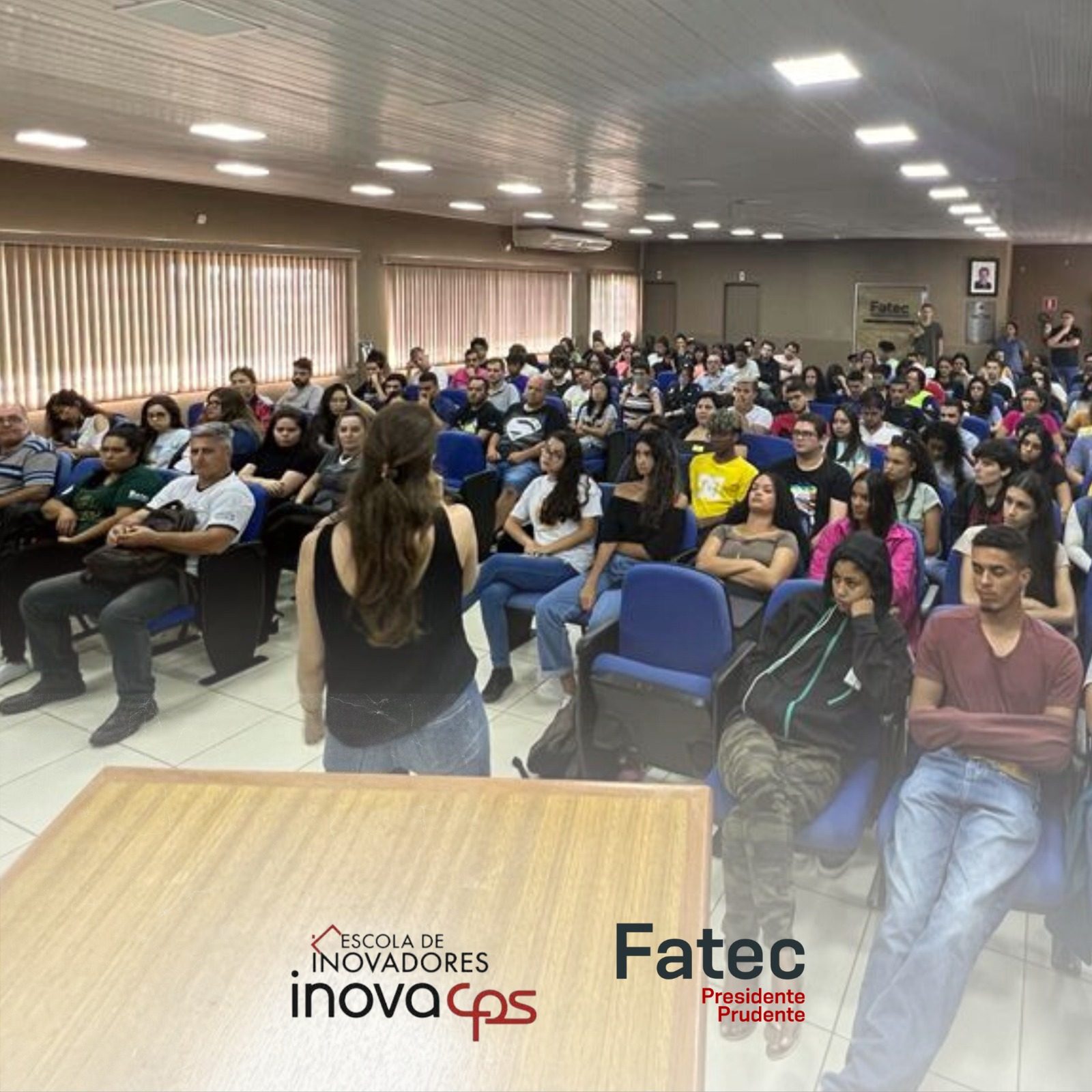 Nesta terça-feira (07), a Profa. Meiriele Mazzo, esteve na Fatec Prudente para orientar os alunos sobre a 16ª edição da Escola de Inovadores (CPS).