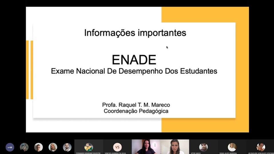 A atividade, além de expor o objetivo do ENADE, esclareceu a relevância do exame tanto para o aluno quanto para a instituição. No final da palestra, os alunos participaram de um quiz sobre a temática explanada, que teve como premiação para o 1º colocado um “Phone Gamer”, patrocinado pela empresa Multimídia Educacional. Os alunos vencedores foram Diego Torres Barbosa da Cunha (noturno) e Larissa Nascimento Favareto (manhã).