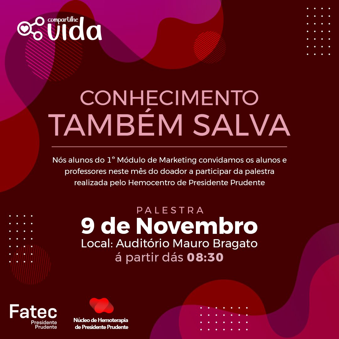 Uma parceria firmada entre a Fatec Prudente e o Hemocentro (Núcleo de Hemoterapia de Presidente Prudente), resultou em um projeto desenvolvido por estudantes do Curso Superior de Tecnologia em Marketing.