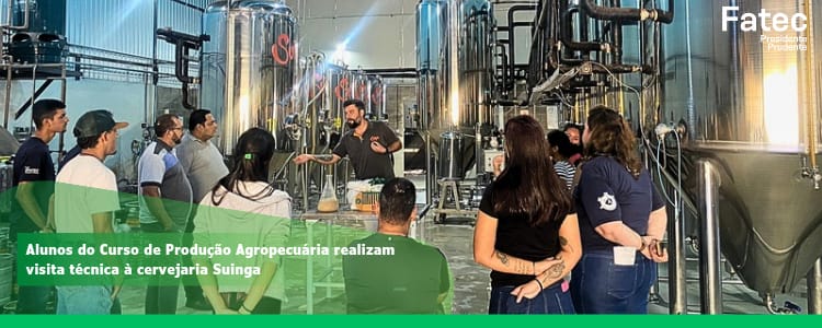 Na manhã do dia 10 de junho, os estudantes do 5° módulo do curso de Produção Agropecuária realizaram uma visita técnica à Cervejaria Suinga, acompanhados pela coordenadora Prof.ª Dra. Angela Madalena M. Godinho e pela auxiliar docente Tatiana Spilari.