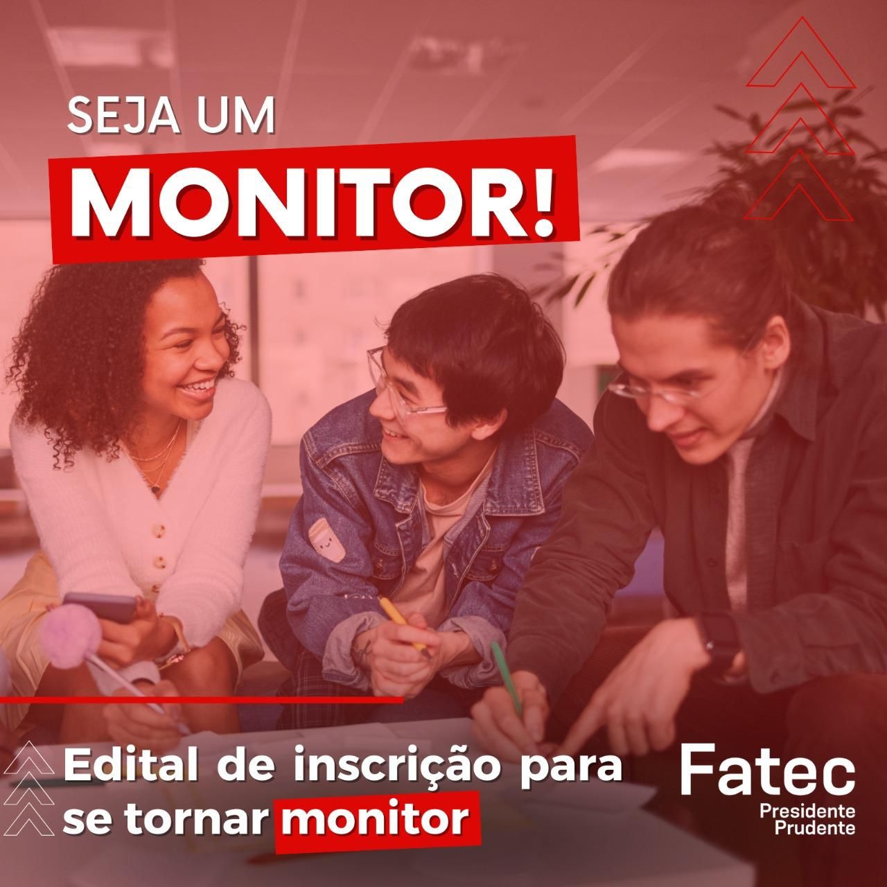 O programa de monitoria foi instituído na FATEC Prudente com o objetivo de complementar a aprendizagem do conteúdo das disciplinas dos cursos de graduação, possibilitando ao aluno um auxílio no estudo. Além disso, os monitores são orientados pelos docentes das disciplinas e, assim, conseguem se aprimorar na área, valorizando o processo ensino-aprendizagem.