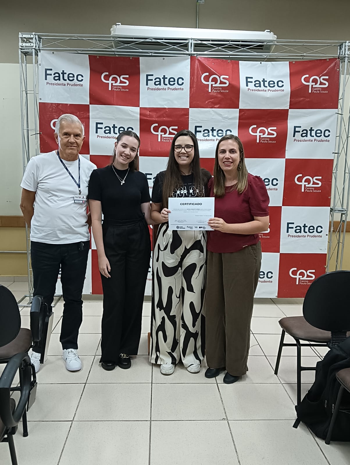 A atividade também contou com a presença do Coordenador de Fatec, Prof. Doutor Ari Alves de Oliveira Filho, e da coordenadora do curso, Professora Doutora Juliana Casarotti, reforçando o compromisso institucional com a integração entre alunos, família e equipe acadêmica.