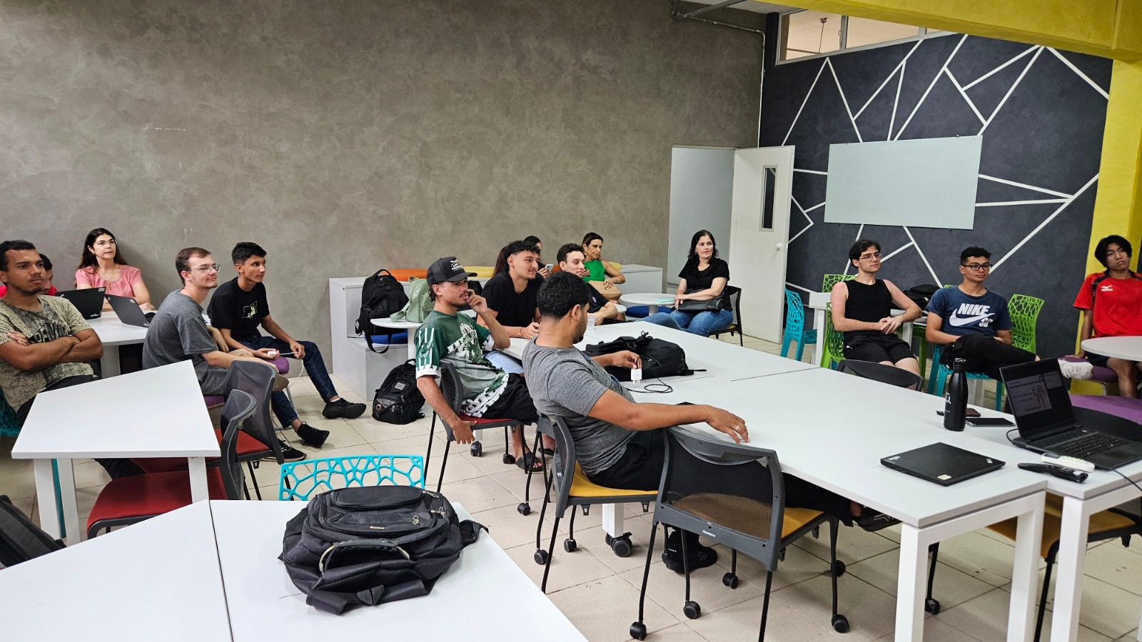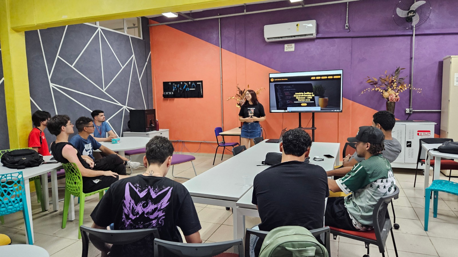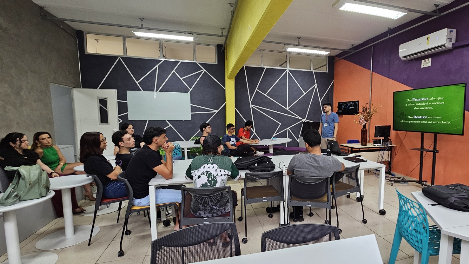 Em seguida, o Prof. Me. Bruno Santos de Lima, escolhido como paraninfo da turma, conduziu uma aula diferente, relembrando momentos marcantes vividos ao longo dos dois anos de curso. Em sua fala, evidenciou o amadurecimento técnico e pessoal dos alunos, ressaltou o perfil diferenciado da turma e compartilhou orientações para os próximos passos da vida profissional.