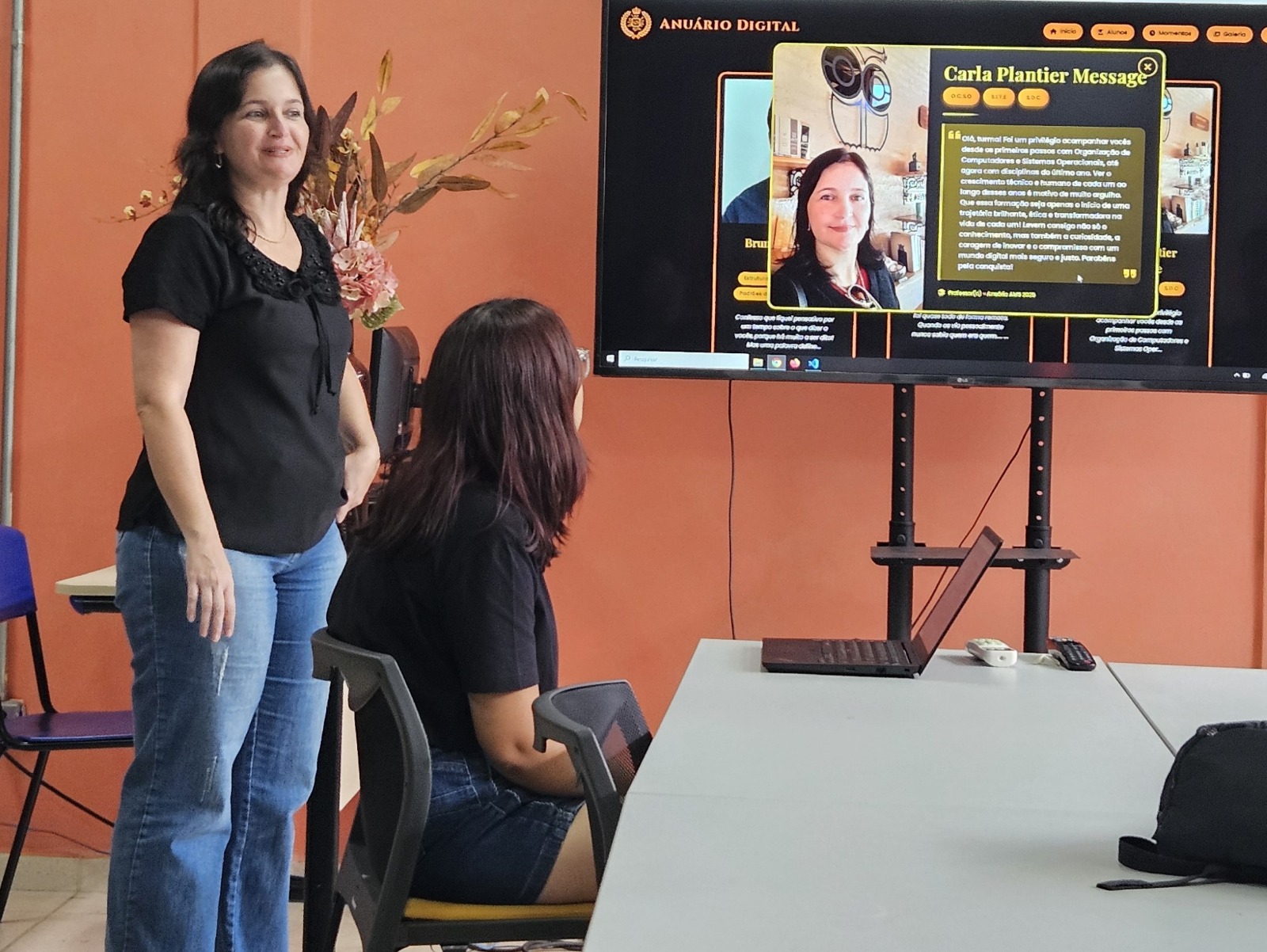 Um dos destaques da programação foi a apresentação do anuário digital da turma, desenvolvido pela aluna Manoela Pinheiro da Silva, representante de classe. A aplicação, construída a partir dos conhecimentos técnicos adquiridos na graduação, reúne registros fotográficos de cada aluno e das atividades realizadas ao longo do curso, além de mensagens de todos os professores que atuaram na formação da turma. O material está disponível em: https://anuario-ams-2025.vercel.app/