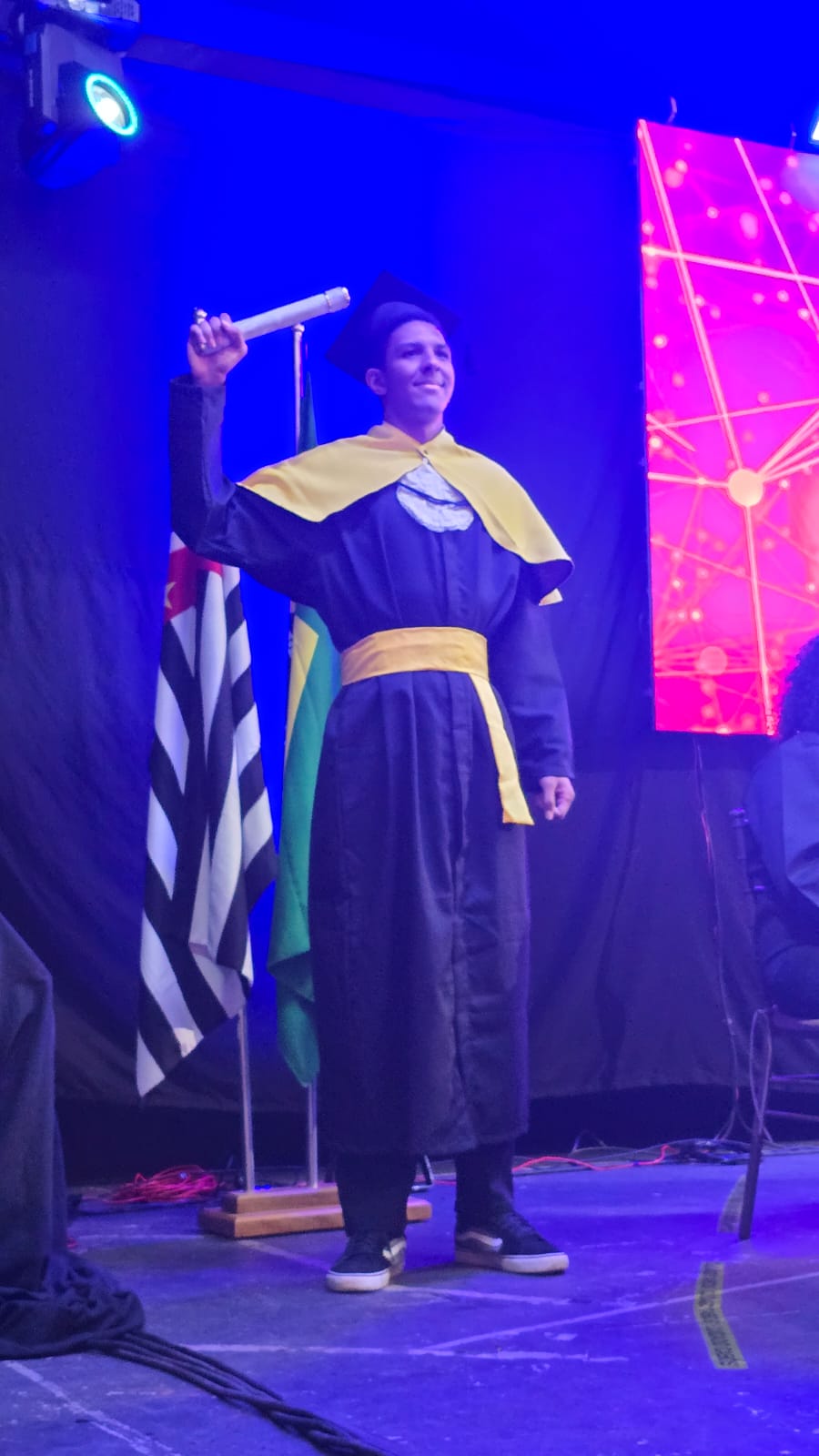 Um dos momentos mais solenes da noite foi o juramento oficial, proferido pela formanda Isabelle Fermino Cabriotti, do curso de Análise e Desenvolvimento de Sistemas (noturno), reafirmando o compromisso ético dos novos tecnólogos com a sociedade. Representando os graduandos, a oradora Maria Heloisa Franco Fonseca, do curso de Marketing, emocionou os presentes ao relembrar a trajetória acadêmica, destacando a superação, a amizade e a persistência na construção dos sonhos.