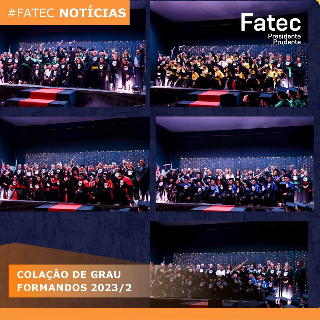 Na última quarta-feira (13), a Fatec de Presidente Prudente realizou a solenidade de Colação de Grau dos formandos da 29ª Turma do Curso Superior de Tecnologia em Agronegócio, 27ª Turma do Curso Superior de Análise e Desenvolvimento de Sistemas, 18ª Turma do Curso Superior de Eventos, 18ª Turma do Curso Superior de Gestão Empresarial (Presencial), 16ª Turma do Curso Superior de Gestão Empresarial (modalidade EAD) e 5ª Turma do Curso Superior de Produção Agropecuária.