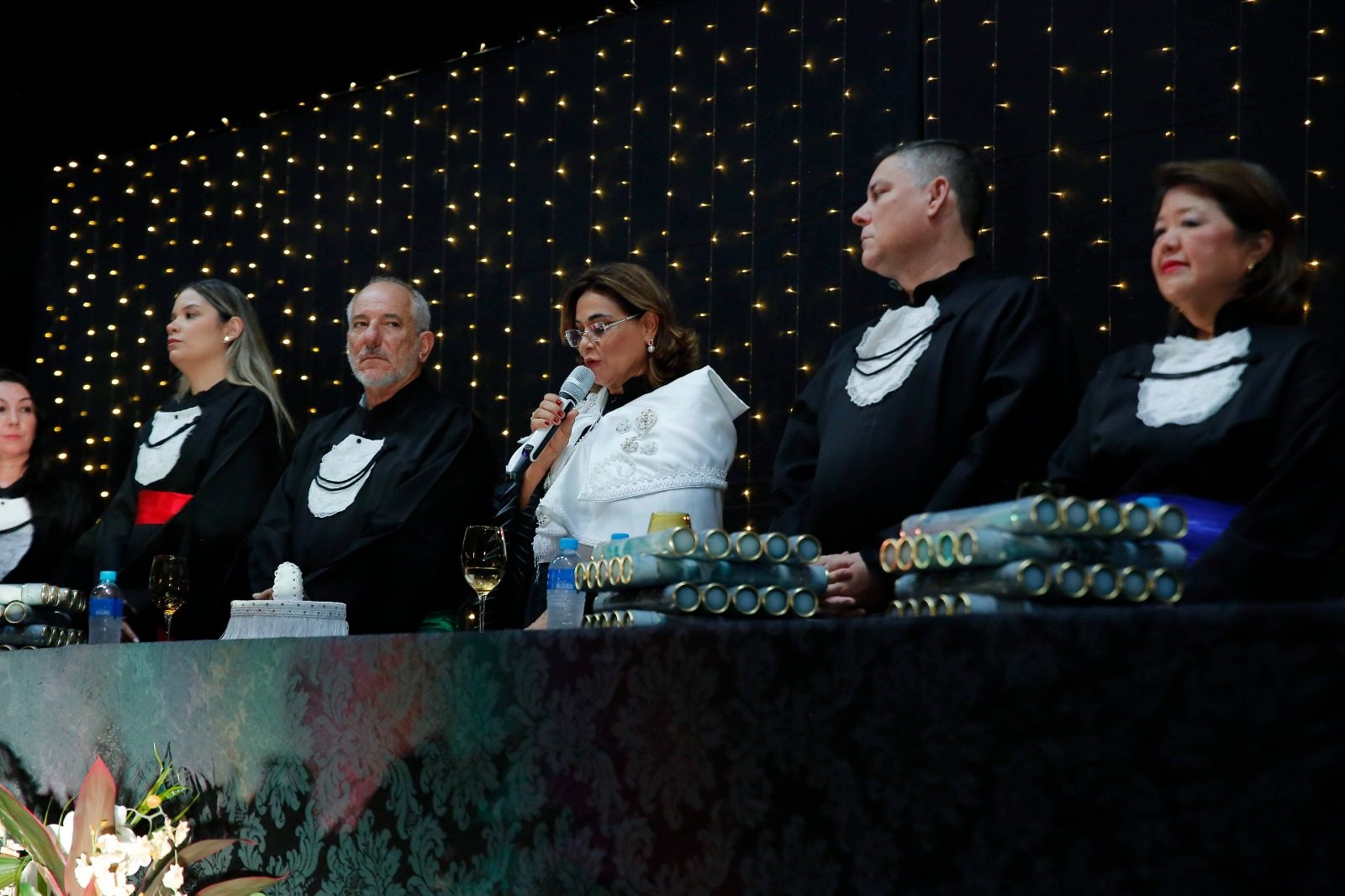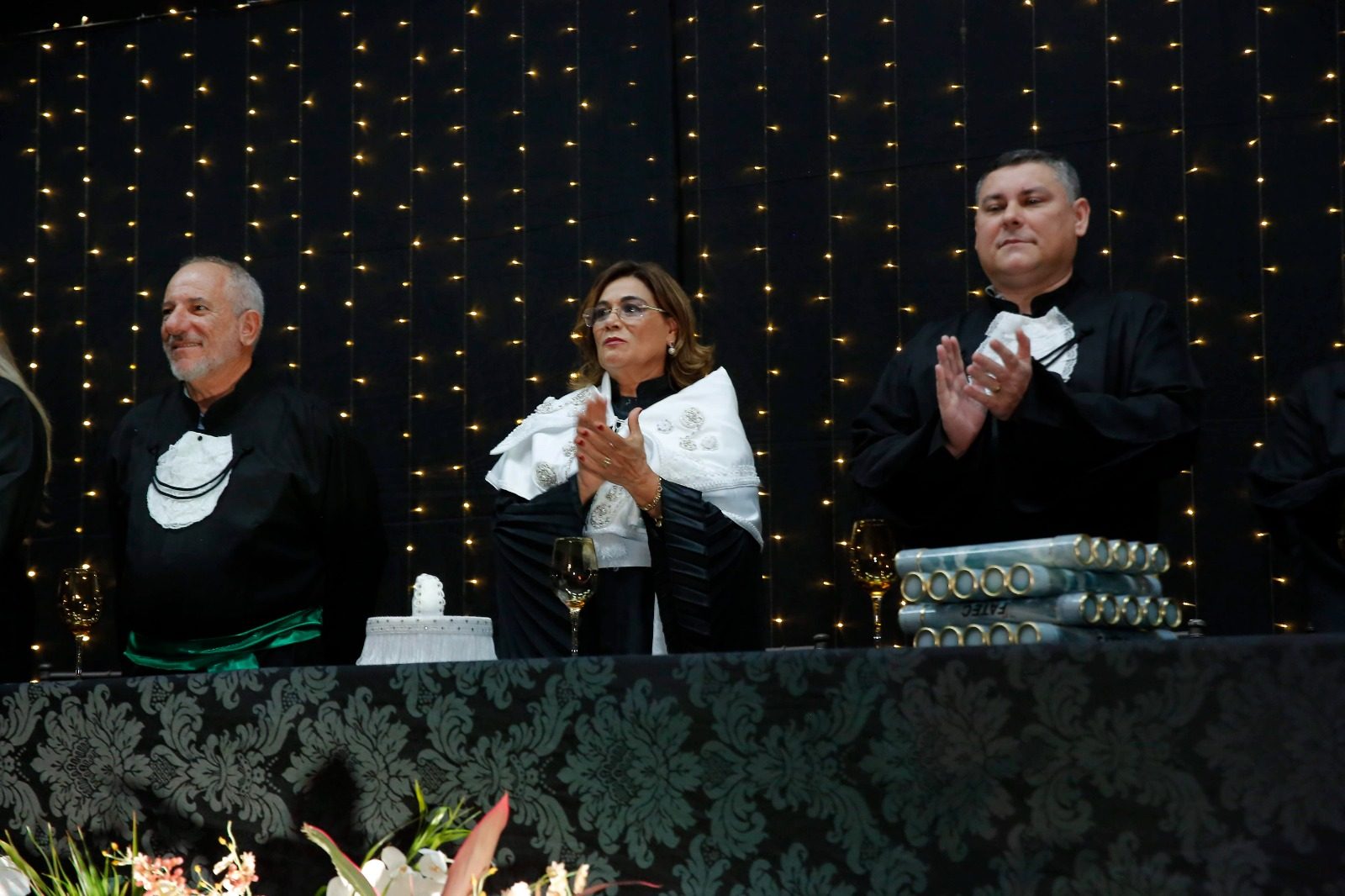 A cerimônia aconteceu no salão do Andreas Eventos em Presidente Prudente com a participação da diretora da Instituição, Profa. Dra. Renilda T. Monteiro, que presidiu a sessão solene e contou com a presença dos coordenadores, Congregação da Fatec Prudente, homenageados e familiares dos formandos.