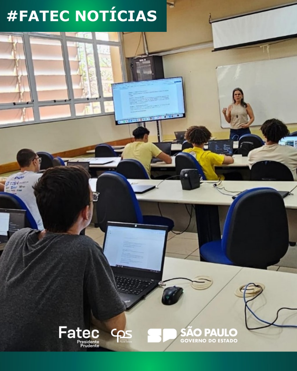 No dia 12 de setembro, alunos do curso de Análise e Desenvolvimento de Sistemas (ADS) da Fatec Presidente Prudente, na modalidade AMS (Programa de Articulação da Formação Profissional Média e Superior), participaram de uma programação especial em comemoração ao Dia do Programador, celebrado no 256º dia do ano (13 de setembro de 2025).