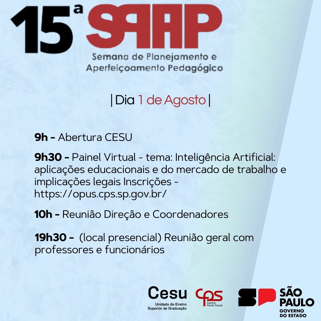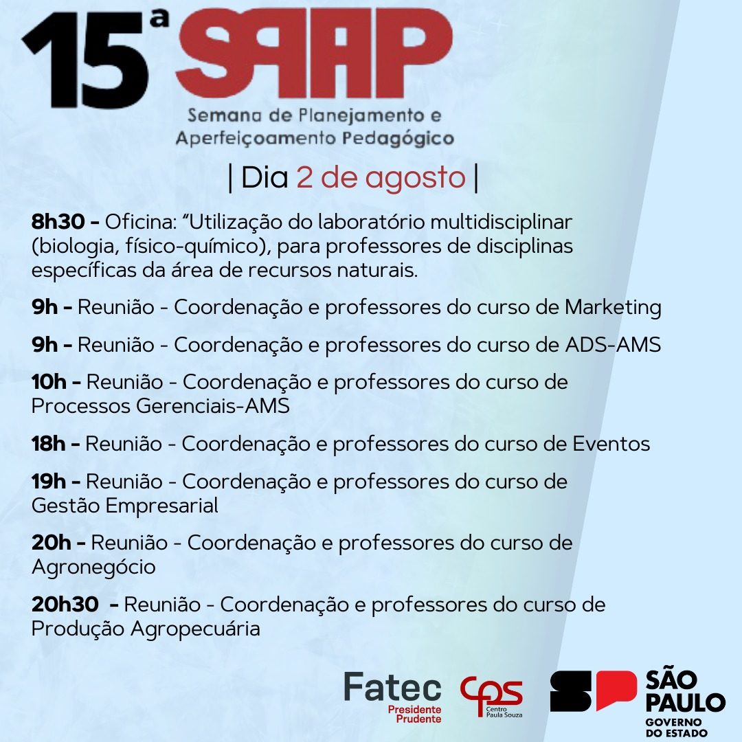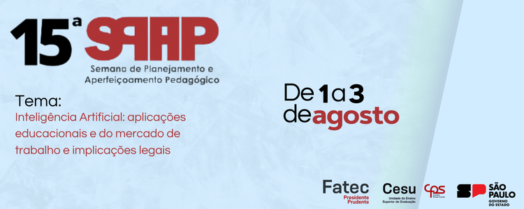 De 01 a 03 de agosto ocorreu a 15ª Semana de Planejamento e Aperfeiçoamento Pedagógico da Fatec Prudente.