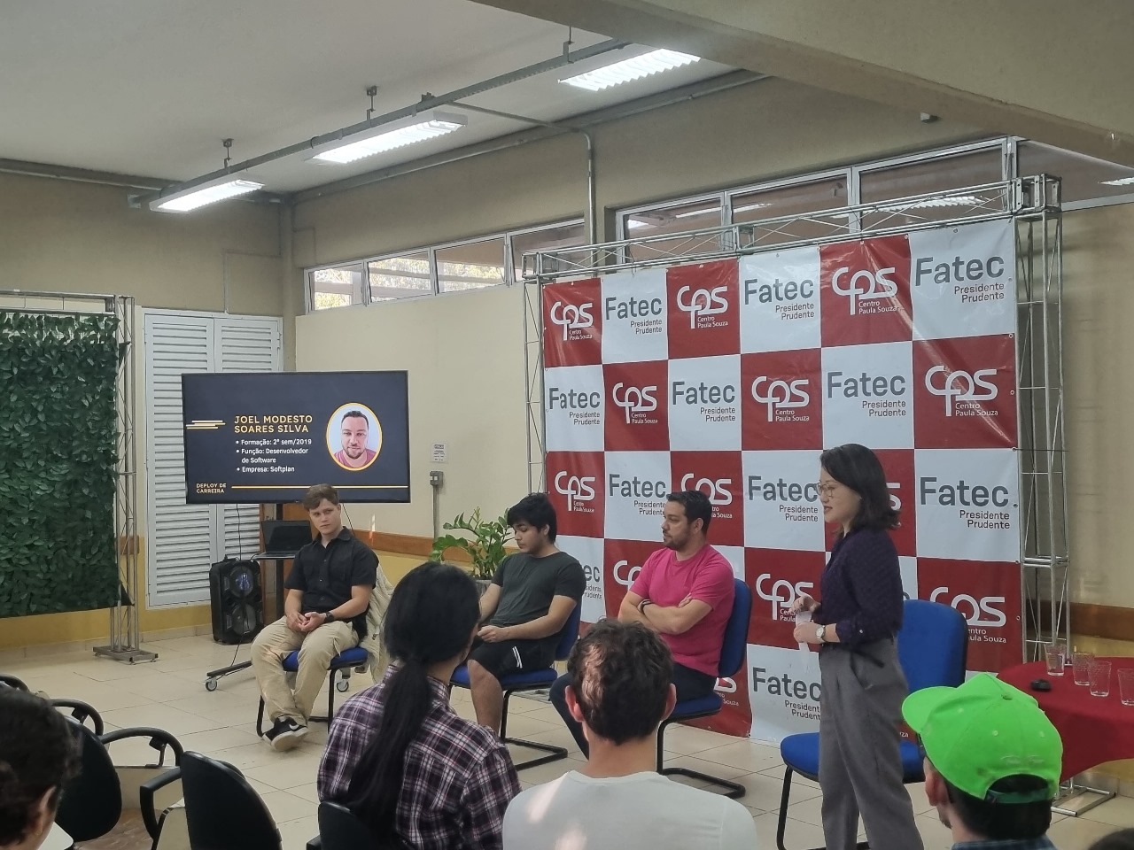 Ademais, Joel compartilhou sua visão sobre o impacto de momentos como esse na formação dos estudantes: “Foi uma experiência muito boa, sempre que posso, gosto de participar desses bate-papos, pois a meu ver é de suma importância para quem está começando a faculdade e mais ainda para quem está terminando. Isso dá um norte e mostra o leque de possibilidades que existe em nossa área, como também é útil para auxiliar o aluno a pensar em qual carreira ele quer seguir dali em diante. Isso foi algo que sempre achei muito valioso na Fatec, e poder participar estando do outro lado, o lado de quem está no mercado e veio para dizer como é, é muito gratificante.”