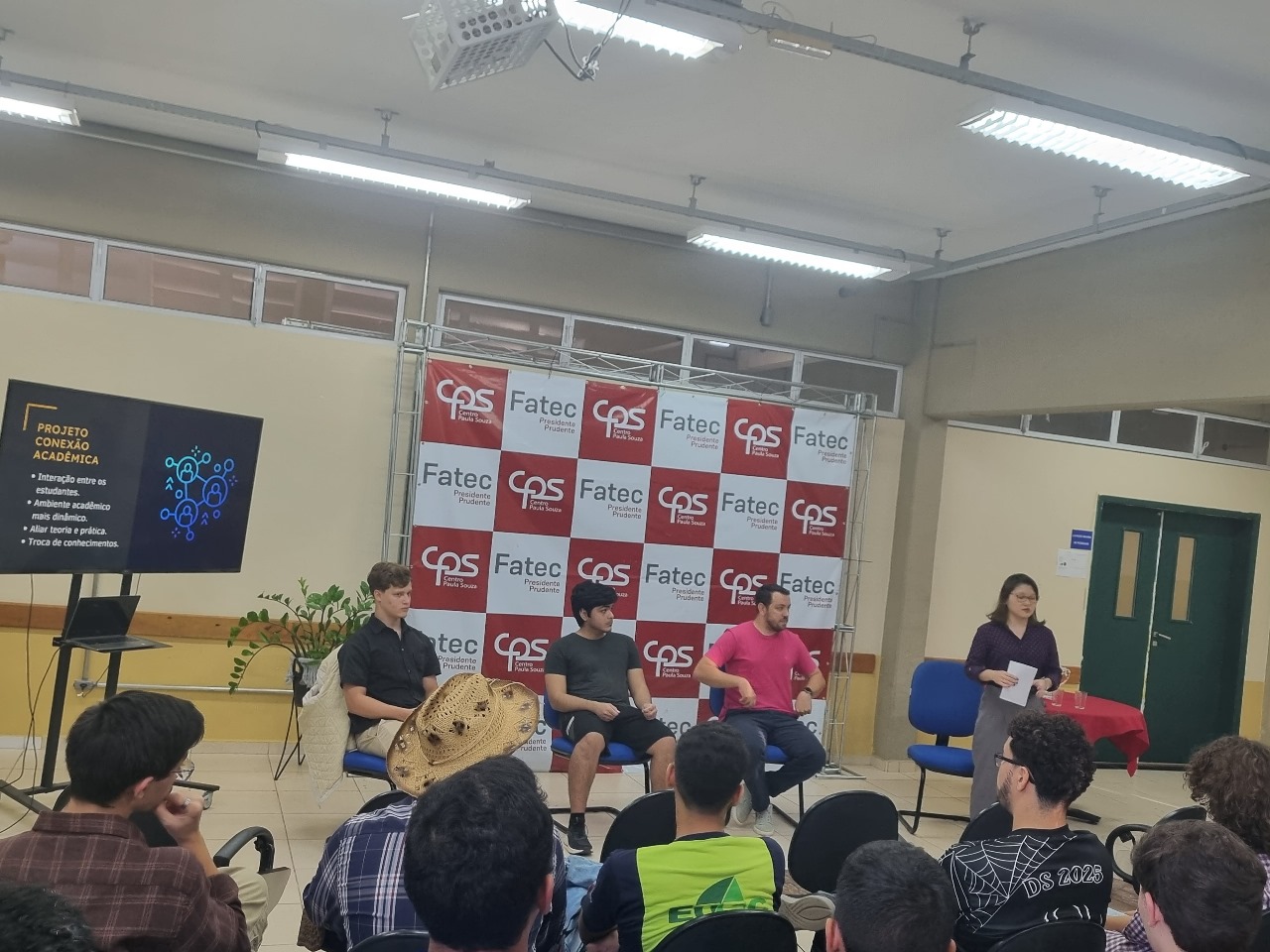 Na tarde do dia 17 de junho, o Espaço Multiuso da Fatec foi palco de uma conversa inspiradora e repleta de aprendizados. O evento Deploy de Carreira – O que vem depois da graduação? reuniu alunos do 2º ano do curso superior de Análise e Desenvolvimento de Sistemas (ADS) e estudantes do 3º ano do Ensino Médio/Técnico em Desenvolvimento de Sistemas (DS), da Etec Prof. Dr. Antônio Eufrásio de Toledo, ambos do Programa de Articulação da Formação Profissional Média e Superior (AMS). A atividade faz parte do projeto Conexão Acadêmica e tem como propósito promover a integração entre os estudantes, por meio da troca de experiências entre alunos e profissionais formados pela própria instituição.