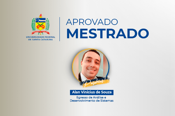 Neste semestre, o recém-formado Alan Vinícius de Souza ingressou no Programa de Pós-Graduação em Ciência da Computação da Universidade Federal de Santa Catarina – UFSC, na cidade de Florianópolis, especificamente, na linha de pesquisa Sistemas Embarcados.