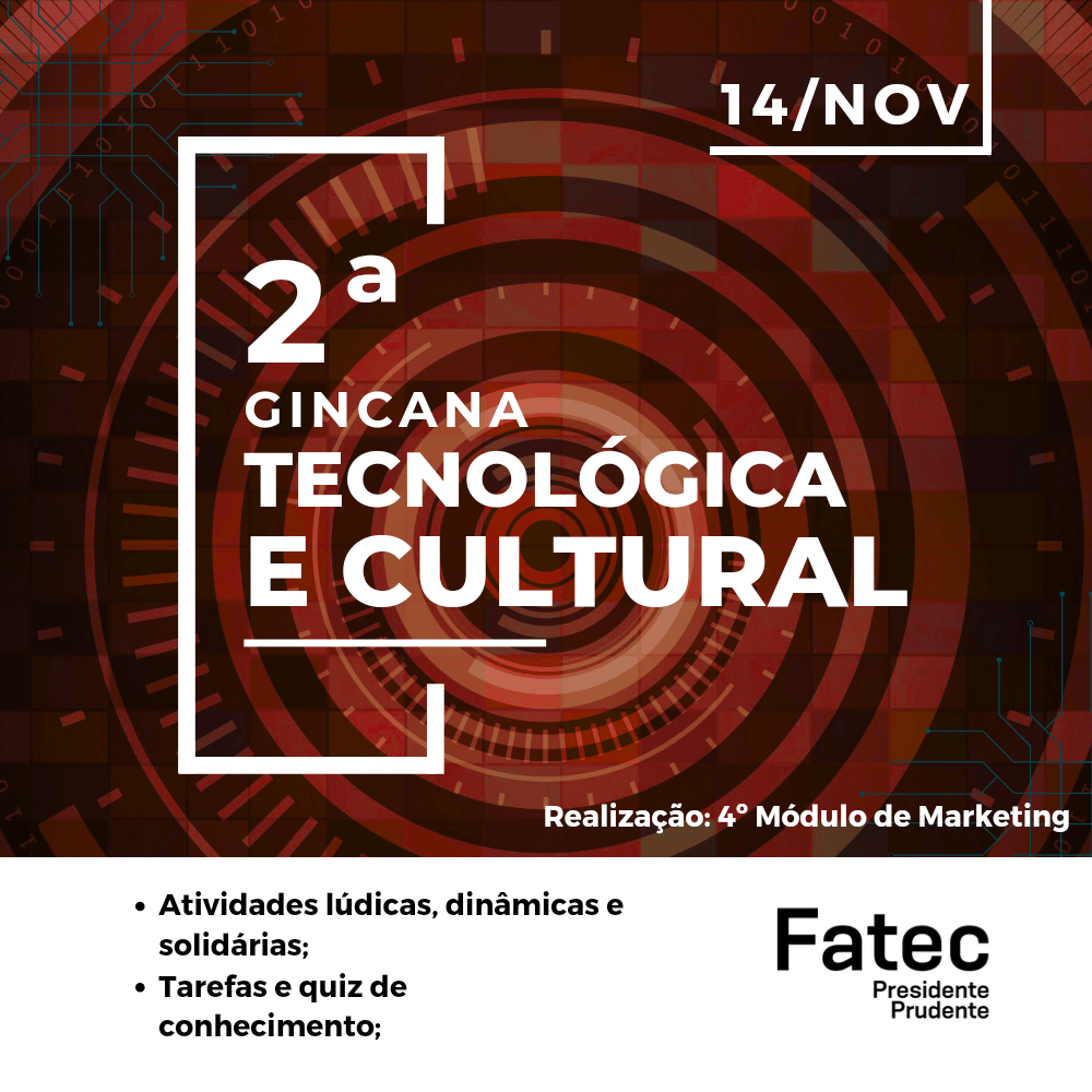 Agenda: 2ª Gincana Tecnológica e Cultural da Fatec de Presidente Prudente