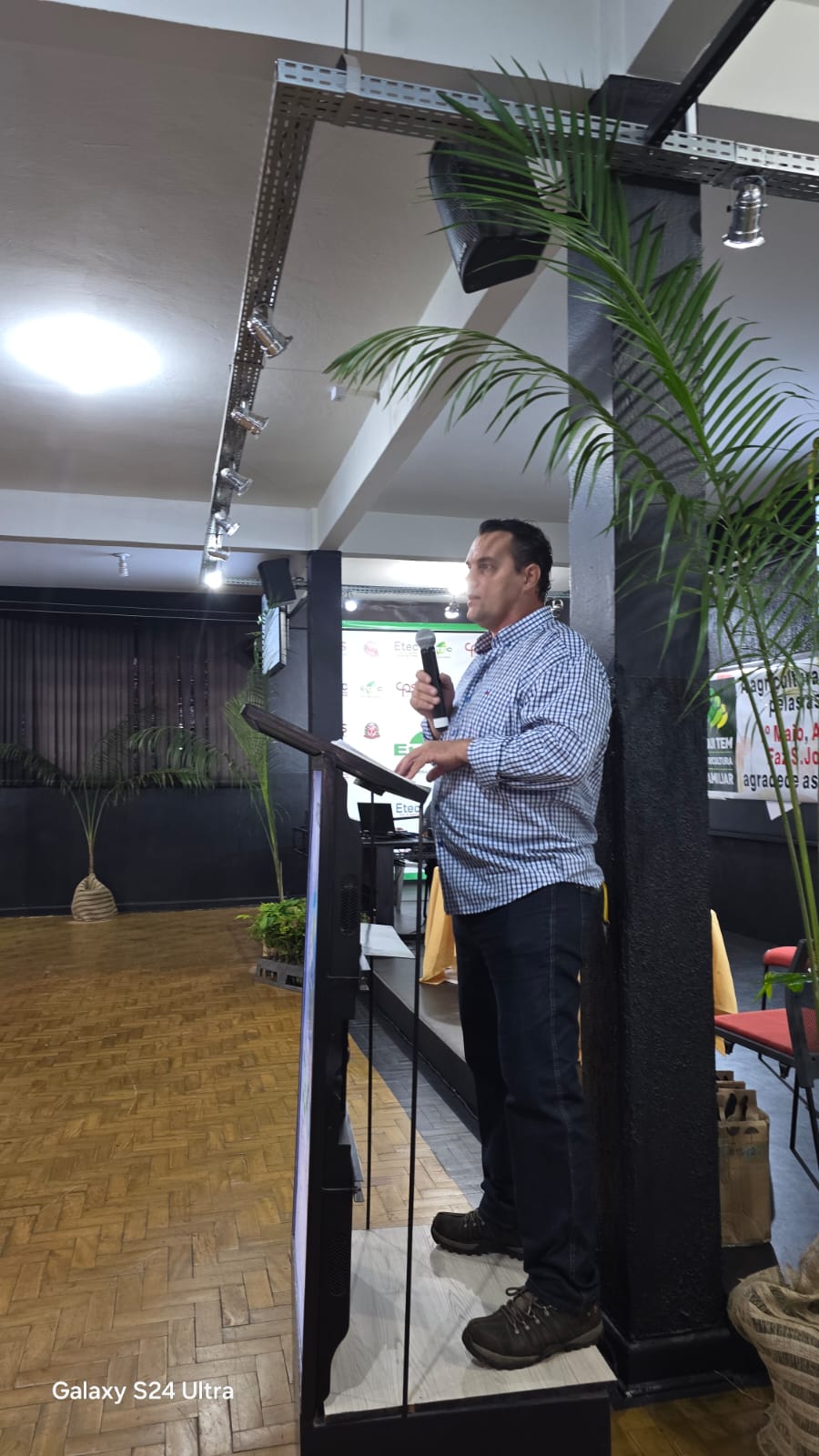 O professor Wilson Antônio de Barros, responsável pelo Ponto Focal CAR na região de Presidente Prudente, explicou mais sobre o trabalho desenvolvido a partir do Ponto Focal, destacando como a CATI trabalha em harmonia com o CAR. O evento contou com a presença de autoridades e representantes da CATI, FATEC, ETEC, Sindicato Rural, CBHPP e do Governo de São Paulo, reforçando o compromisso e o apoio contínuo aos produtores rurais da região, que representam um pilar na economia de Presidente Prudente.
