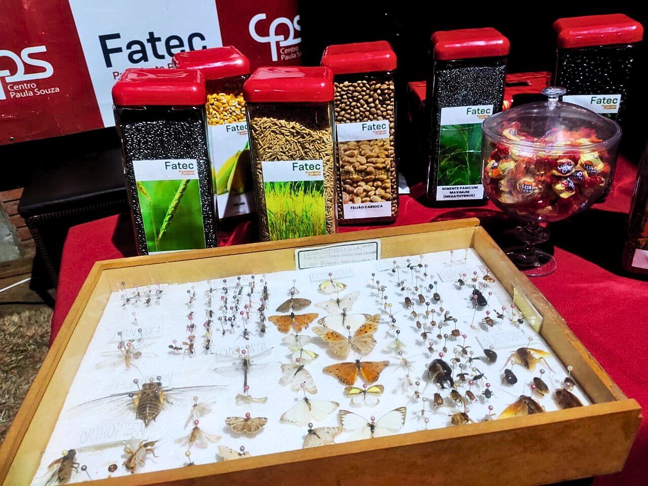 No estande da Fatec, além de saber mais sobre os cursos oferecidos pela unidade, os visitantes tiveram contato com diversos projetos desenvolvidos por estudantes e professores, como a aquaponia, que integra a criação de peixes com o cultivo de verduras; mostruário de sementes, além de um insetário com borboletas e cigarras.