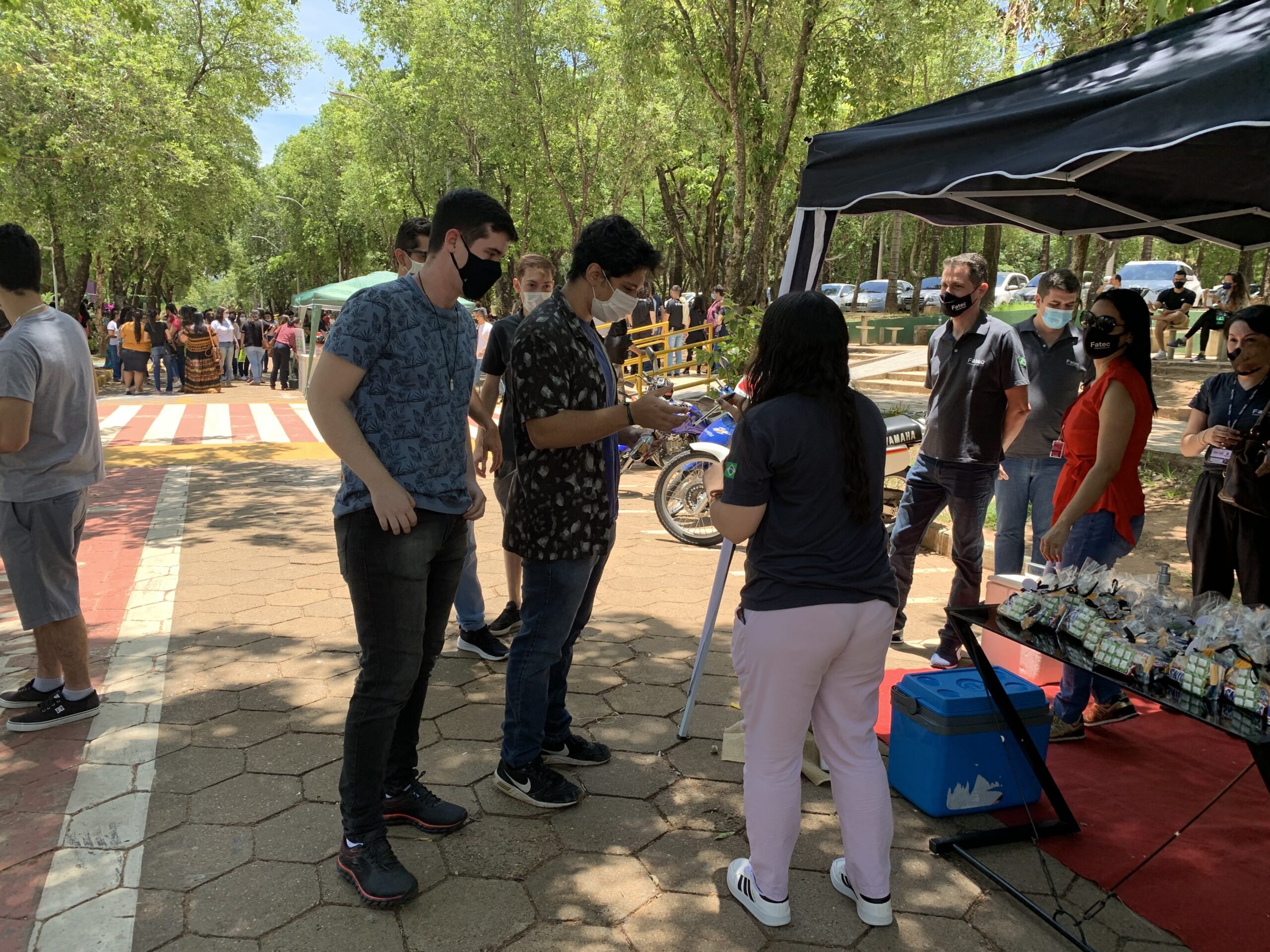 Os colaboradores da Instituição fizeram uma ação especial de acolhimento aos estudantes, disponibilizando um kit com água, lanche e caneta para os participantes. Os que chegaram mais cedo à prova puderam contar com um espaço Zen, disponibilizado pela instituição.