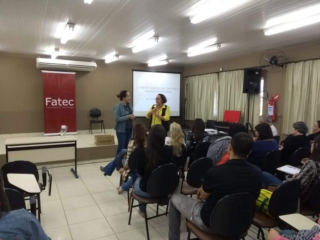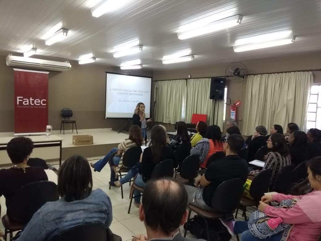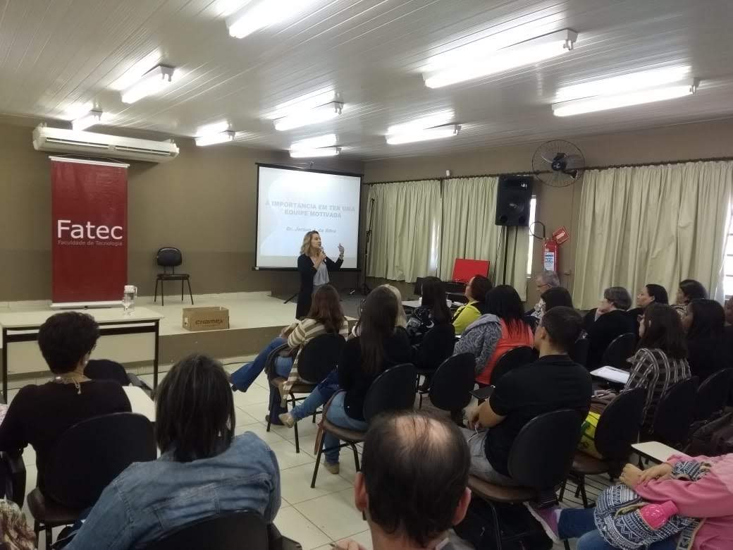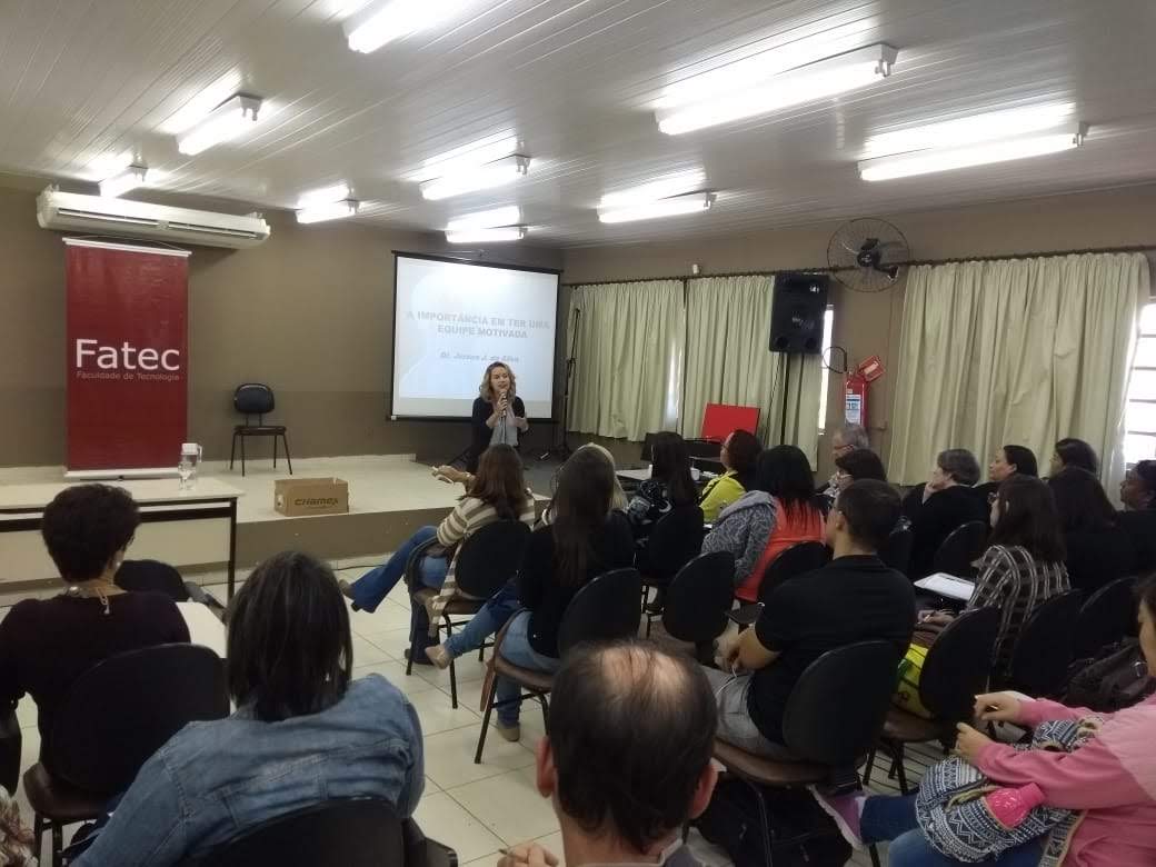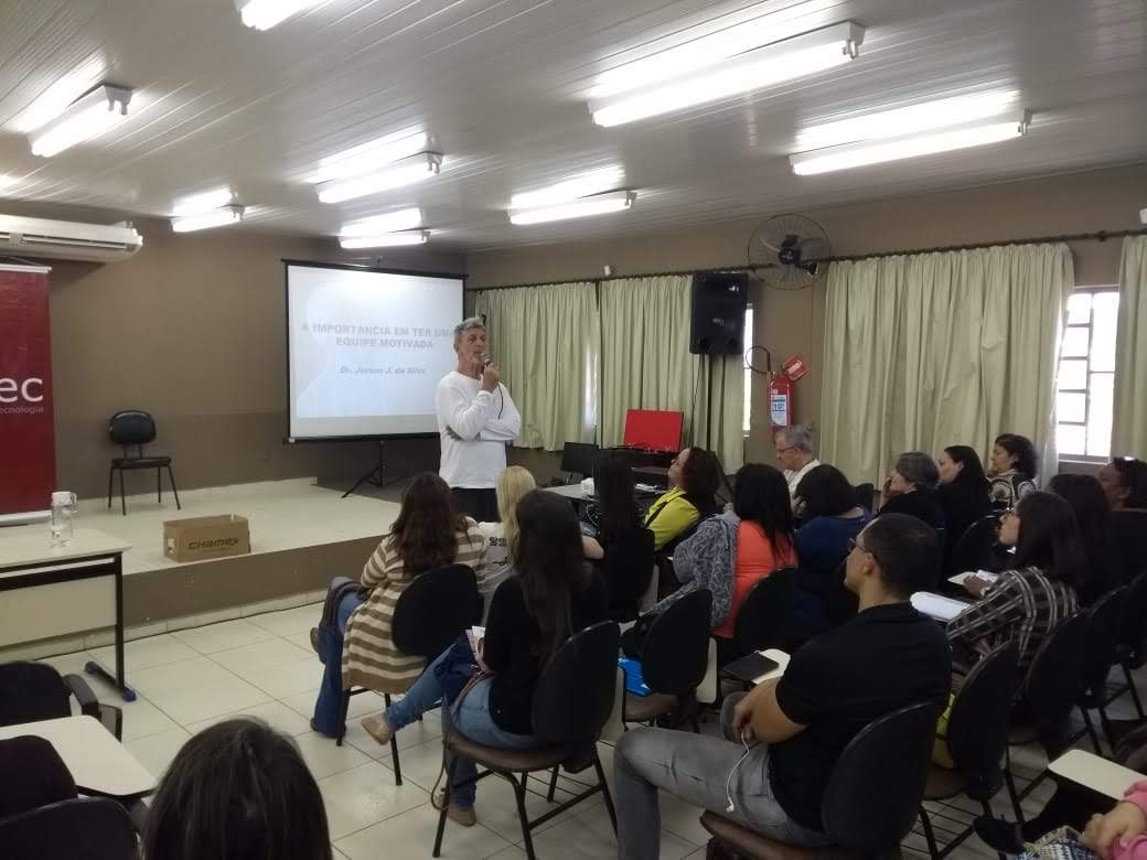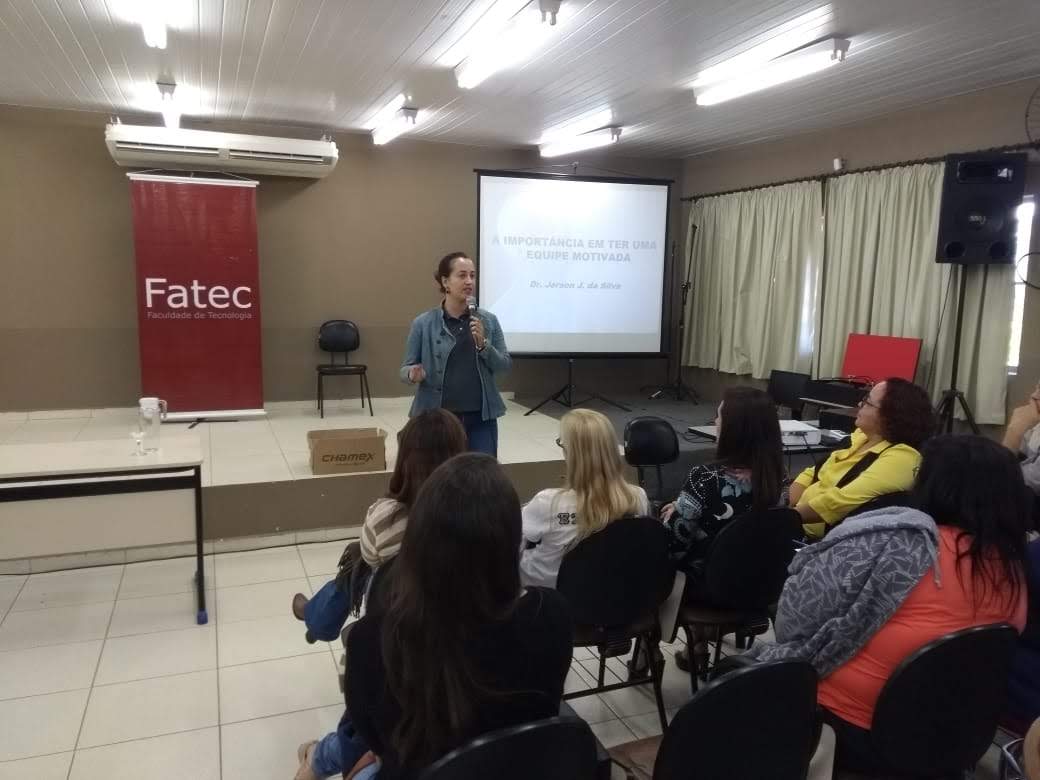 A Fatec de Presidente Prudente realizou na tarde desta sexta-feira, dia 07, uma capacitação com o tema “A importância de ter uma equipe motivada”, ministrada pelo professor Dr. Jerson Joaquim Silva, aos escriturários e secretários de escola que atuam na rede municipal de ensino de Presidente Prudente.