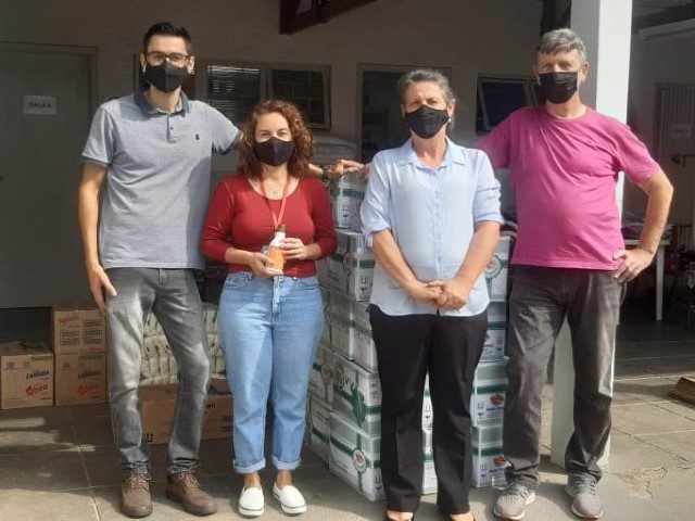 As doações foram entregues no Fundo Social pela coordenadora do Curso de Eventos, Berta Nascimento, pelo Coordenador do Curso de Agronegócio, Odnei Gargantini, e Carlos Camargo do setor Administrativo.