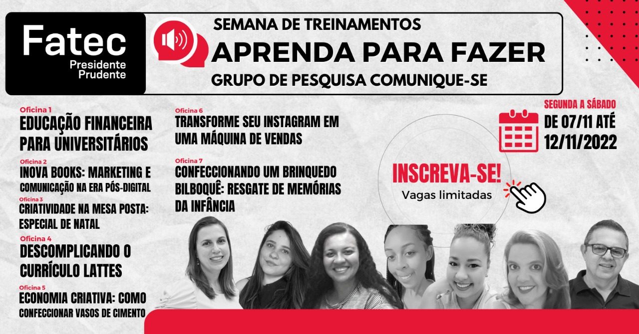 A Semana de treinamentos “Aprenda para fazer” acontecerá de 07 a 12 de novembro. As vagas são limitadas.
