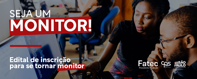 O programa de monitoria foi instituído na FATEC Prudente com o objetivo de complementar a aprendizagem do conteúdo das disciplinas dos cursos de graduação, possibilitando ao aluno um auxílio no estudo. Além disso, os monitores são orientados pelos docentes das disciplinas e, assim, conseguem se aprimorar na área, valorizando o processo ensino-aprendizagem.
