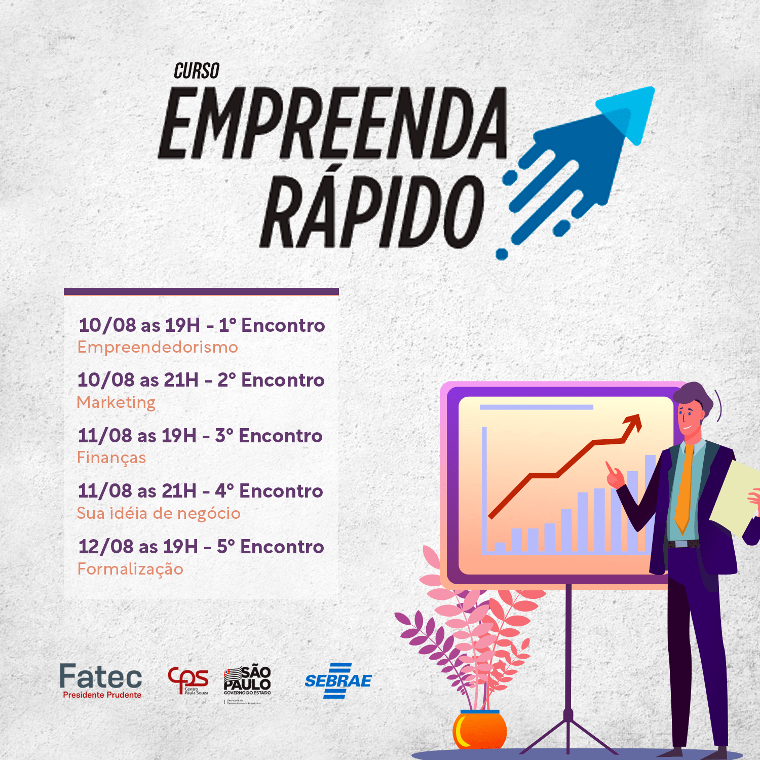 Fatec Prudente e SEBRAE Presidente Prudente fecharam parceria para oferecer o CURSO EMPREENDA RÁPIDO ONLINE – AO VIVO com exclusividade para os alunos da instituição.