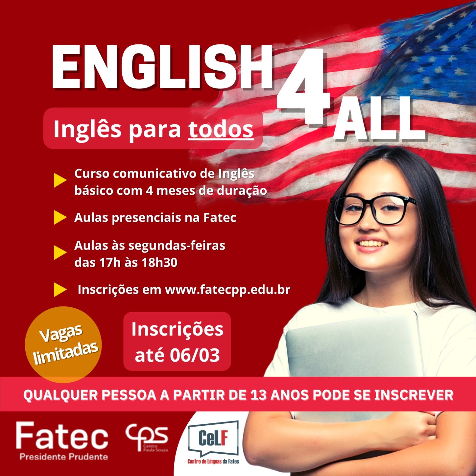 ATENÇÃO: O curso será ministrado PRESENCIALMENTE na FATEC às SEGUNDAS-FEIRAS das 17:00 às 18:30. INSCREVA-SE APENAS SE PUDER ASSISTIR ÀS AULAS NO DIA E HORA DETERMINADOS. Inscrições pelo link: https://forms.gle/kstFtkunnpgjd1we7 É necessário que você forneça […]