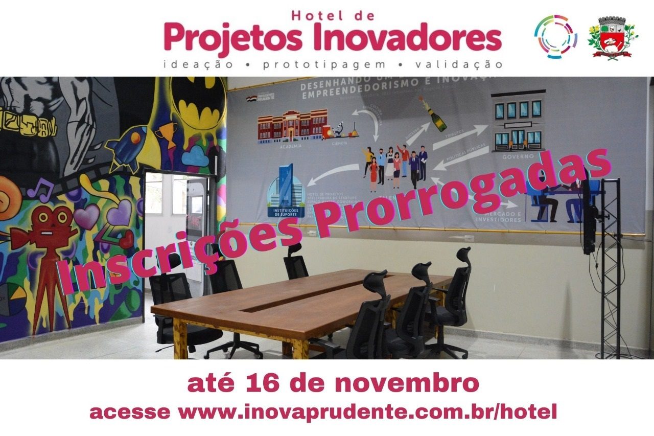 Devido a procura, as inscrições para o Hotel de Projetos Inovadores da Fundação Inova Prudente seguem abertas até o dia 16 de novembro. Ao fim, serão selecionados 20 projetos com maior nota final que podem variar de zero (mínimo) a 25 pontos (máximo).