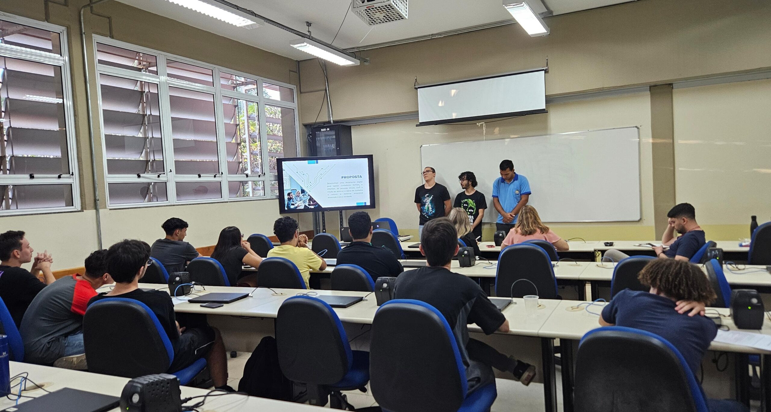 As ideias foram apresentadas a uma banca avaliadora composta pelos professores Bruno Santos de Lima, Elaine Parra Affonso e Giovana Ros Miola, que analisaram aspectos como inovação, benefícios e diferenciais da proposta, aplicabilidade, padrões de projeto, requisitos funcionais e diagramas de casos de uso de acordo com a Engenharia de Software.
