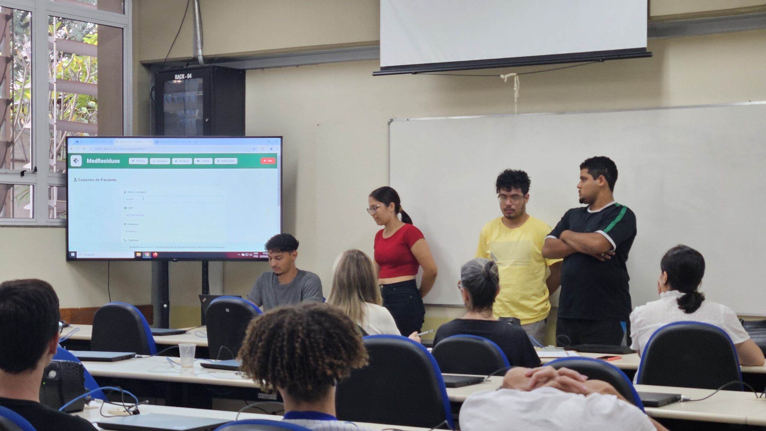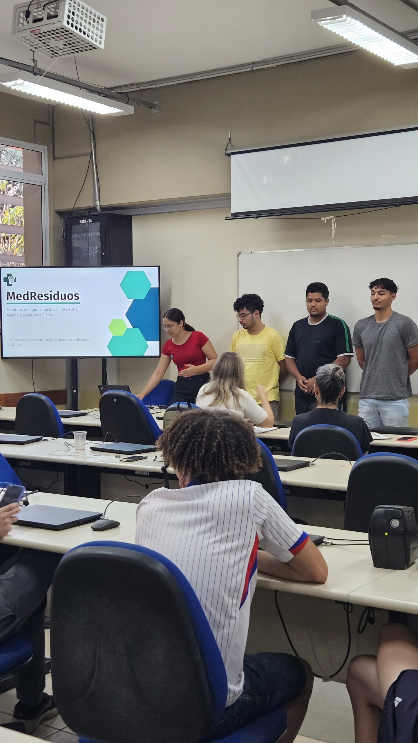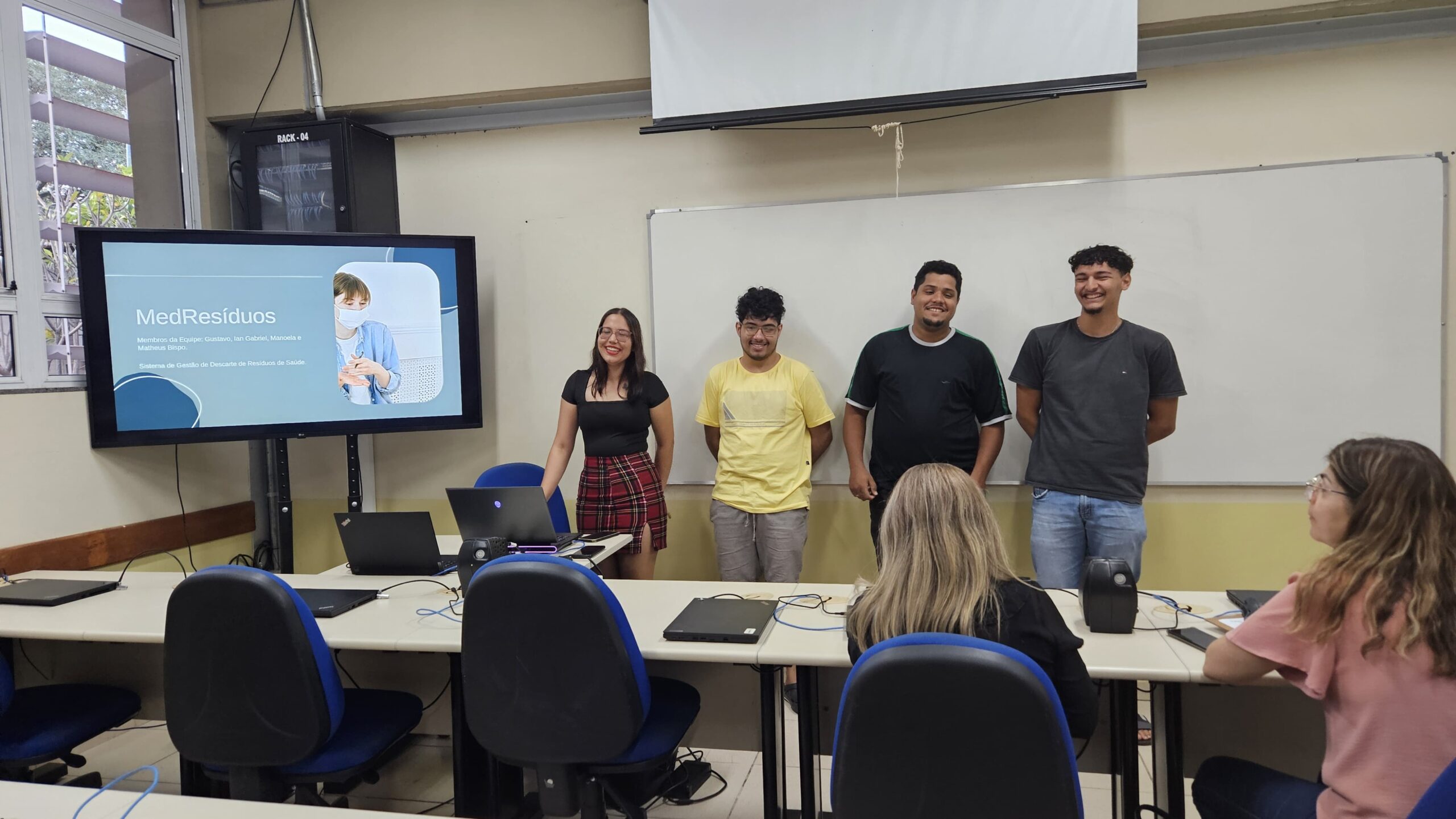 A equipe vencedora foi a MedResíduos, composta por Gustavo Henrique Bispo Costa, Manoela Pinheiro da Silva, Matheus Henrique da Conceição Bispo e Ian Gabriel de Abreu Barbosa, que apresentou um sistema voltado ao controle e gerenciamento do descarte de resíduos hospitalares e laboratoriais, desenvolvido para uso por instituições de saúde. A solução auxilia no acompanhamento do fornecimento de insumos de uso contínuo, como seringas e lancetas, e no monitoramento do retorno e descarte adequado desses materiais, promovendo mais segurança e responsabilidade ambiental.
