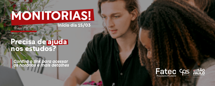 De acordo com o programa de monitoria da Fatec de Presidente Prudente, segue os horários de atendimento das seguintes disciplinas: