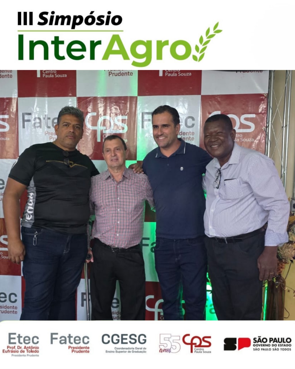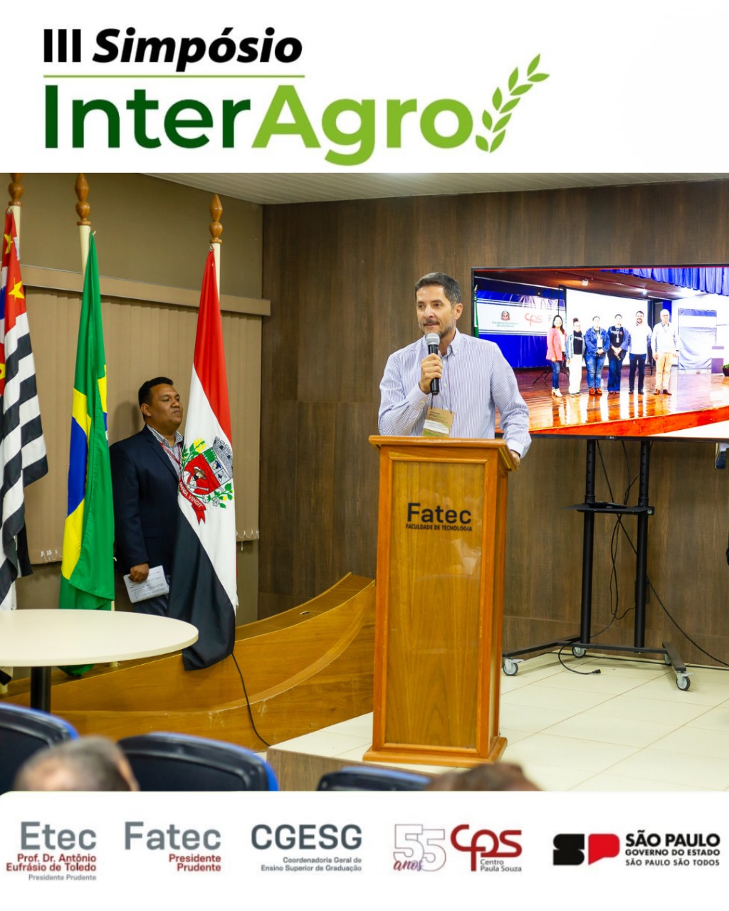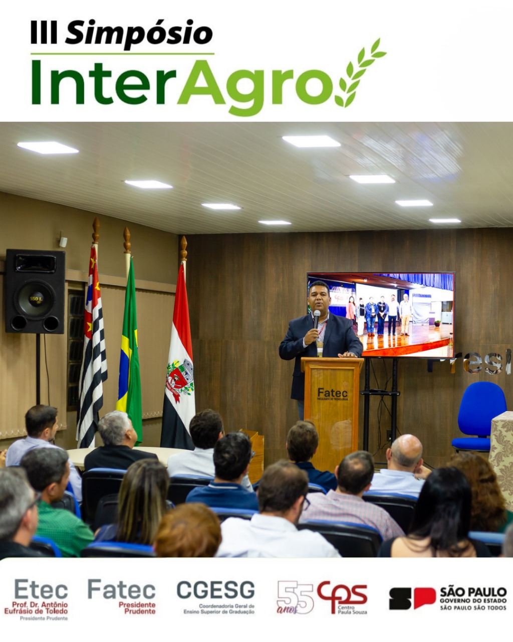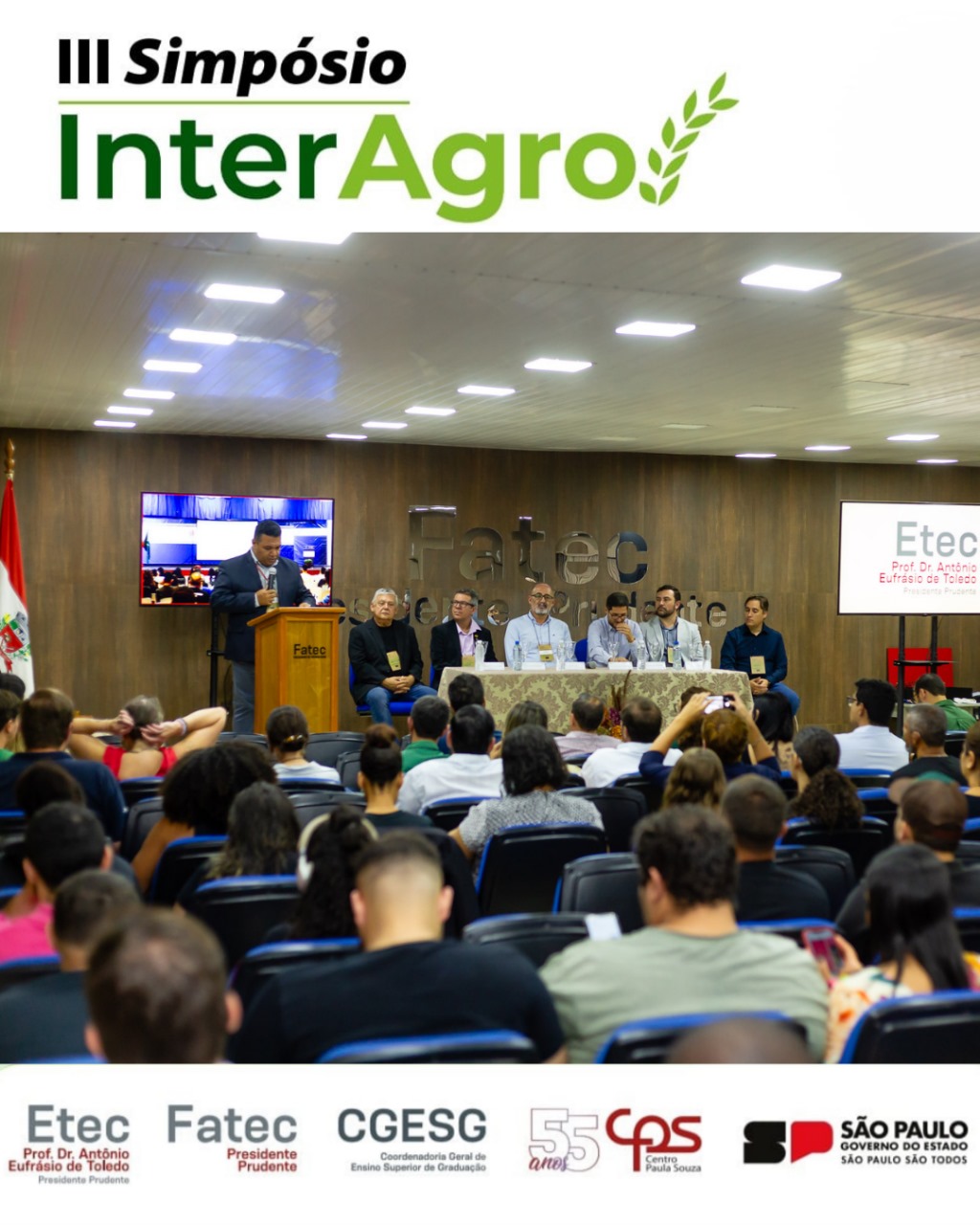 A Fatec Prudente e a Escola Técnica Estadual (Etec) Prof. Dr. Antônio Eufrásio de Toledo, em Presidente Prudente, sediaram nesta terça e quarta-feira (23 e 24) a terceira edição do Simpósio InterAgro. O evento contou com a importante presença do diretor-superintendente do Centro Paula Souza (CPS), Clóvis Dias, além de coordenadores de diversas Fatecs e Etecs.