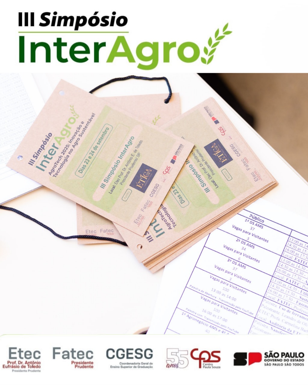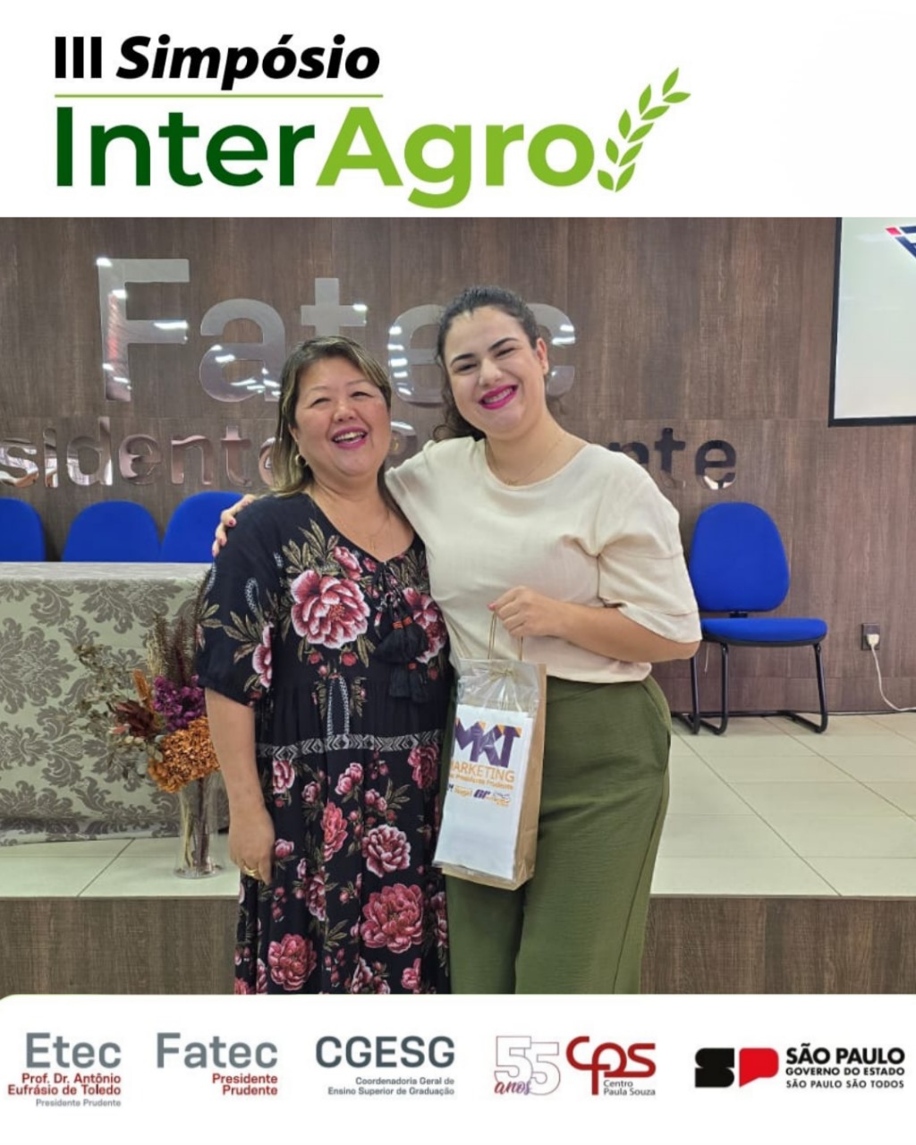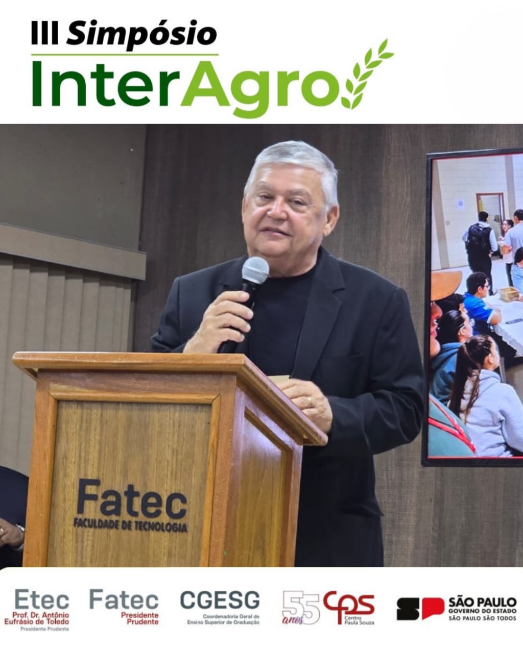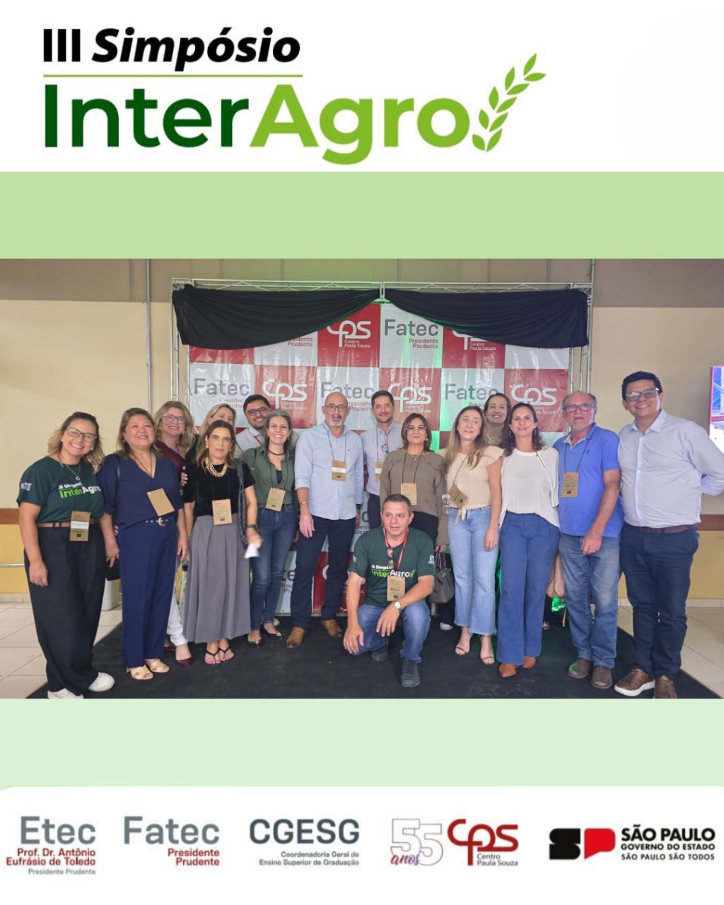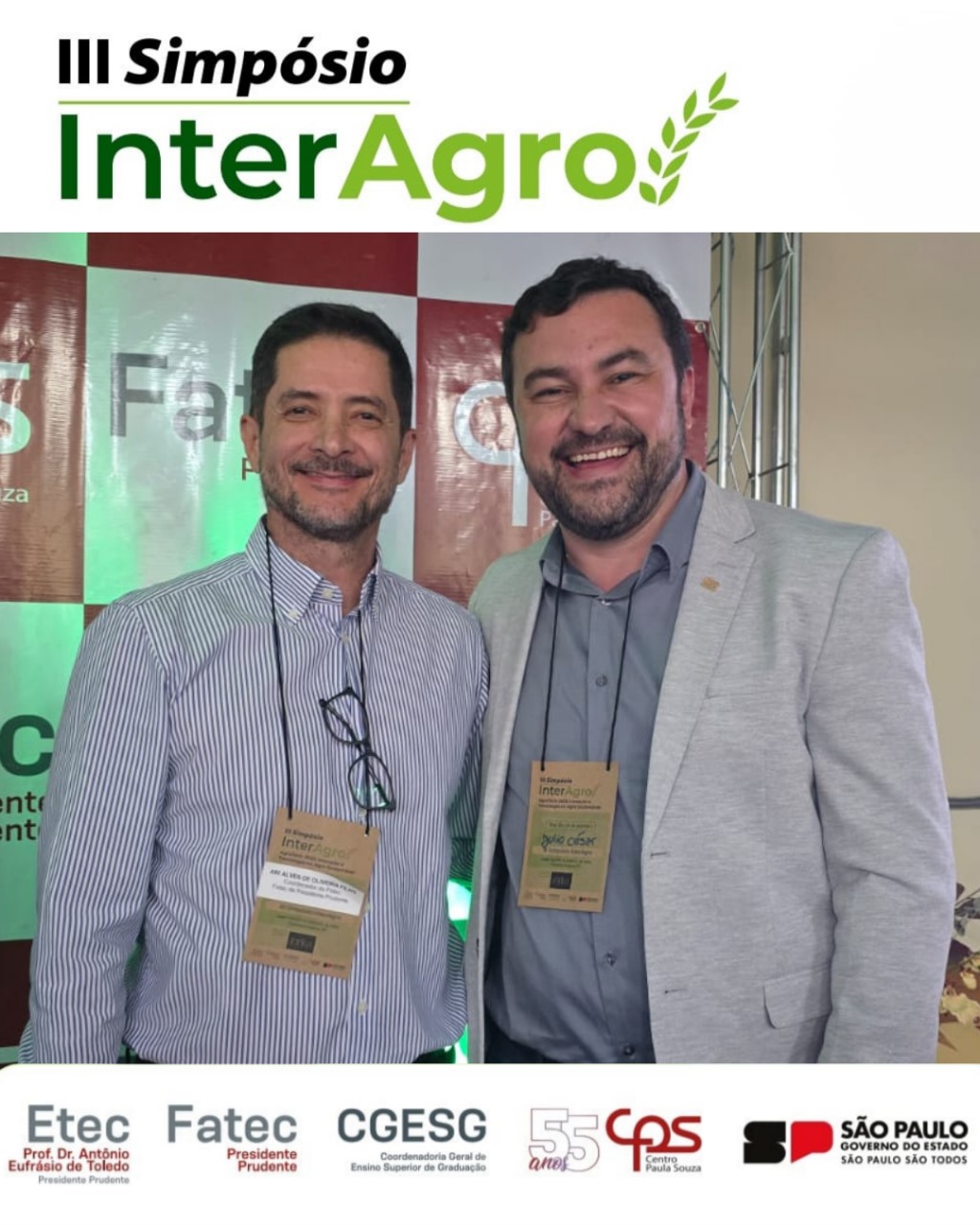 A Fatec Prudente e a Escola Técnica Estadual (Etec) Prof. Dr. Antônio Eufrásio de Toledo, em Presidente Prudente, sediaram nesta terça e quarta-feira (23 e 24) a terceira edição do Simpósio InterAgro. O evento contou com a importante presença do diretor-superintendente do Centro Paula Souza (CPS), Clóvis Dias, além de coordenadores de diversas Fatecs e Etecs.