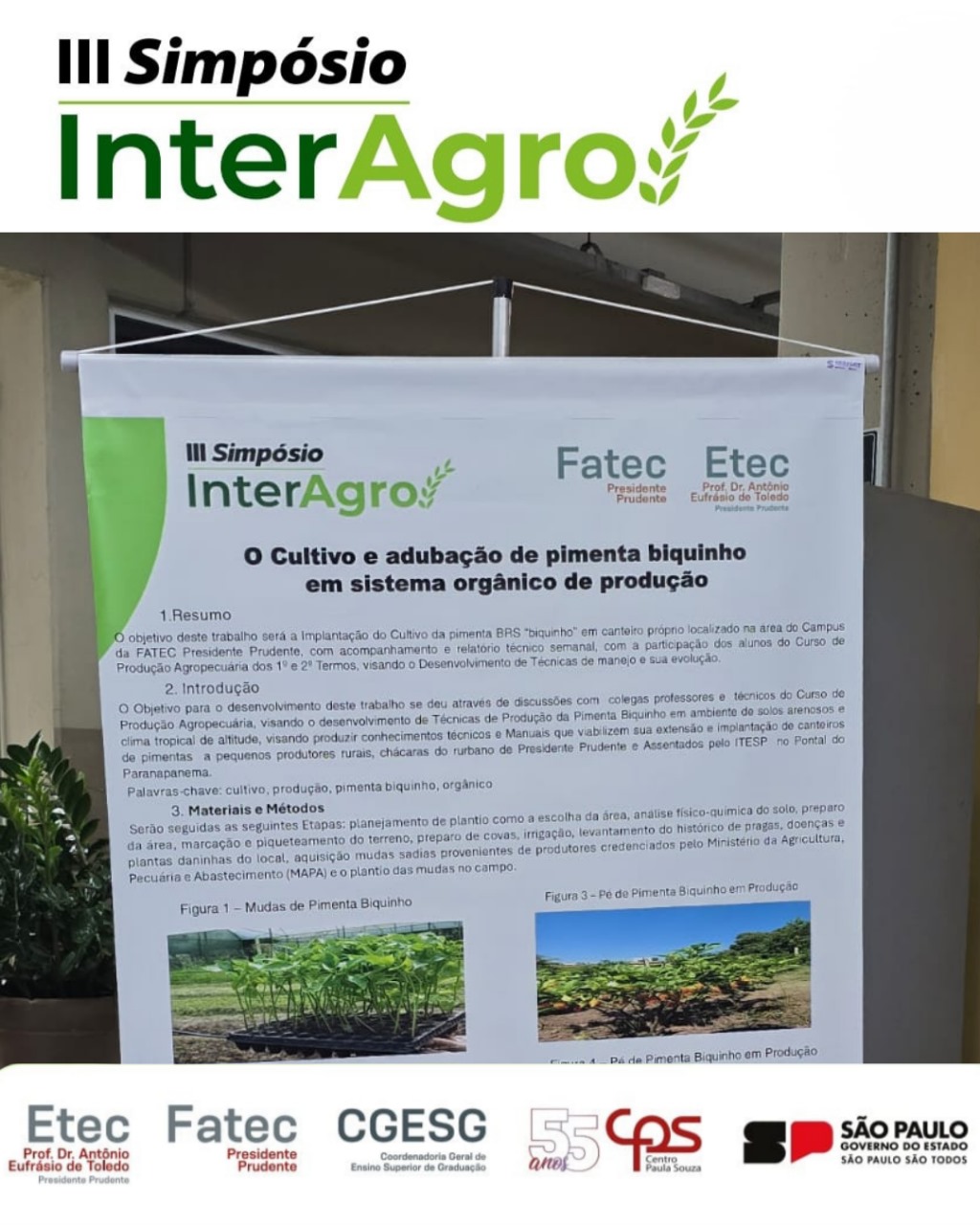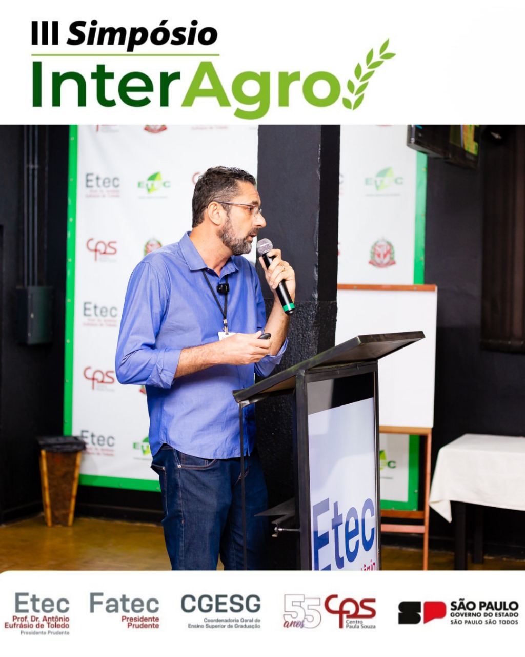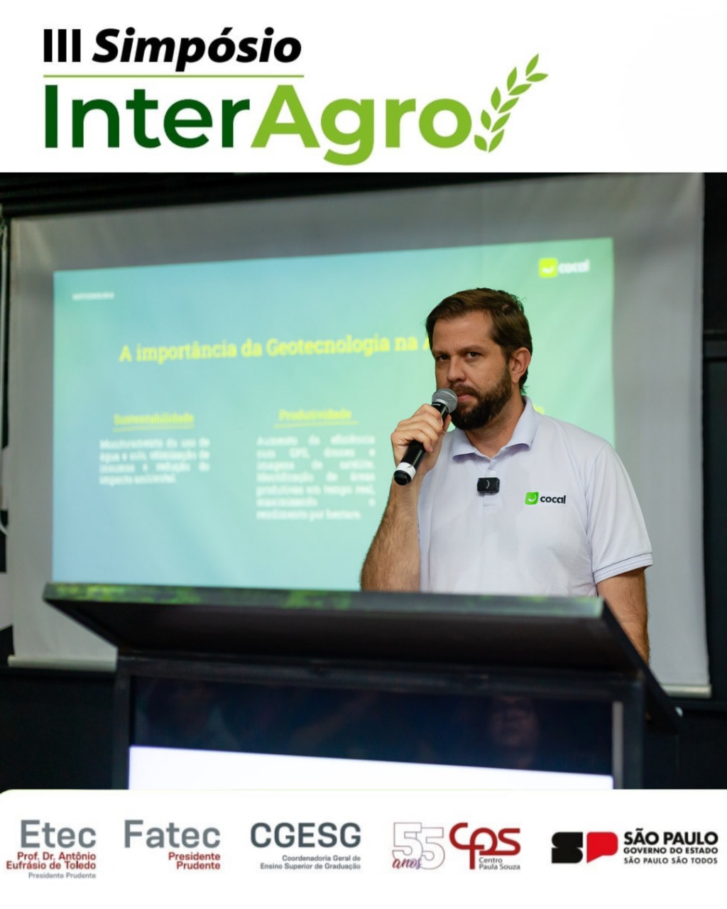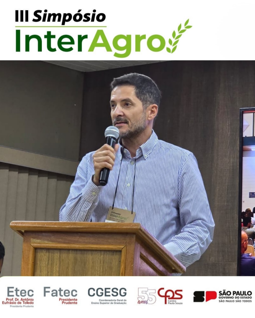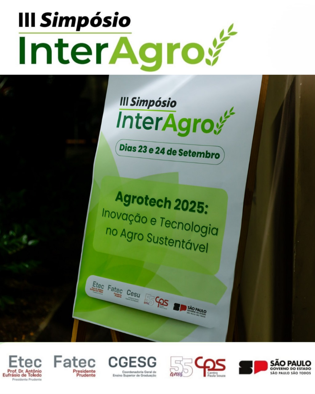 Organizado pela Coordenadoria Geral de Ensino Superior de Graduação (CGESG) do Centro Paula Souza (CPS), em parceria com a Etec e a Fatec Presidente Prudente, o Simpósio InterAgro chegou ao seu último dia de programação, reforçando a importância de novas tecnologias aliadas à sustentabilidade no campo.