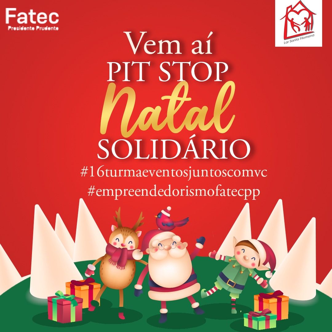 O evento Pit Stop Natal Solidário – Fábrica de Brinquedos, acontecerá no dia 07 de novembro, das 17h às 21h, na própria instituição de ensino. É um evento aberto ao público que contará com a arrecadação de brinquedos para mais de 200 crianças pertencentes do Lar. No dia, os alunos da 16ª turma do Curso de Eventos da Fatec, disponibilizarão equipes de no máximo 6 alunos ao qual será feito um rodízio de hora em hora no local para o atendimento das pesoas estimadas no evento.