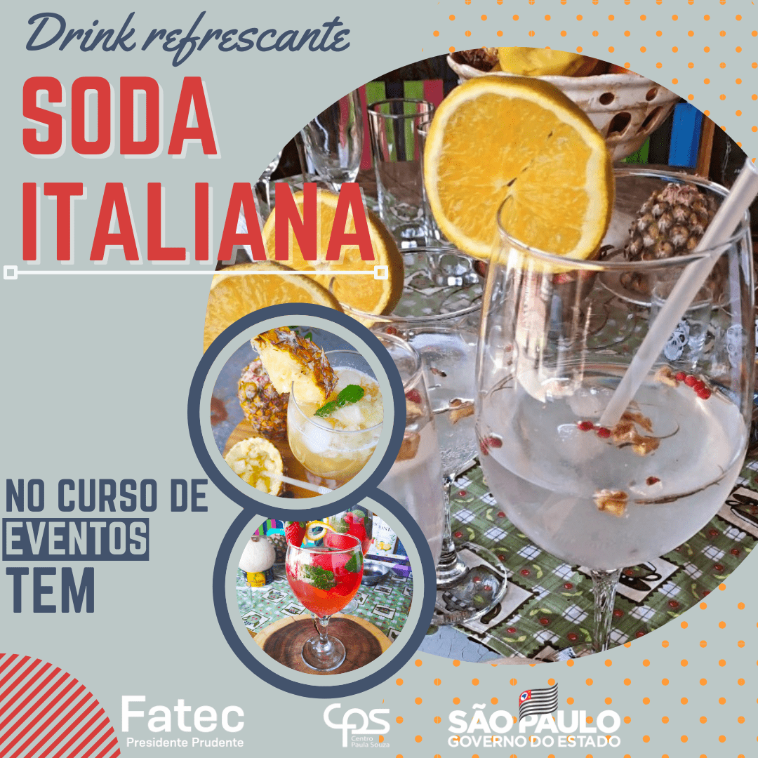 Segundo a docente, Profa. Esp. Thaiane Ferreira Rodrigues, que ministra a disciplina de Alimentos & Bebidas, “a soda italiana é uma bebida refrescante, colorida e gostosa. É preparada de forma artesanal com xarope de frutas, água gaseificada e gelo, sendo uma ótima opção para todos os públicos: crianças, adolescentes, adultos e idosos. São dezenas de opções, dos mais doces aos mais cítricos”, comenta.