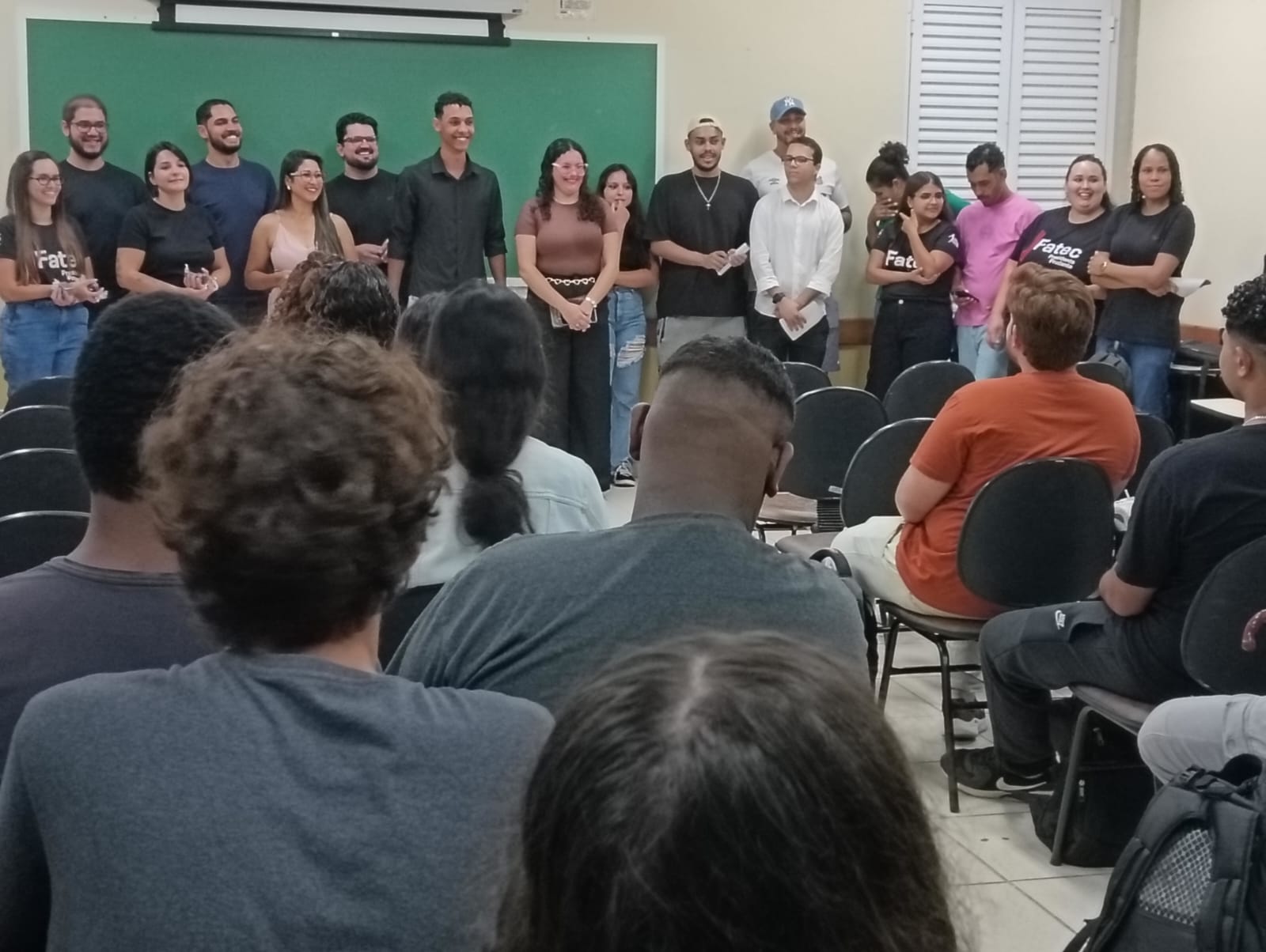 Para tornar a recepção ainda mais especial, os alunos do 2º módulo organizaram uma dinâmica interativa e prepararam um mimo para os calouros. A iniciativa promoveu integração, descontração e fortaleceu o espírito de colaboração entre as turmas.