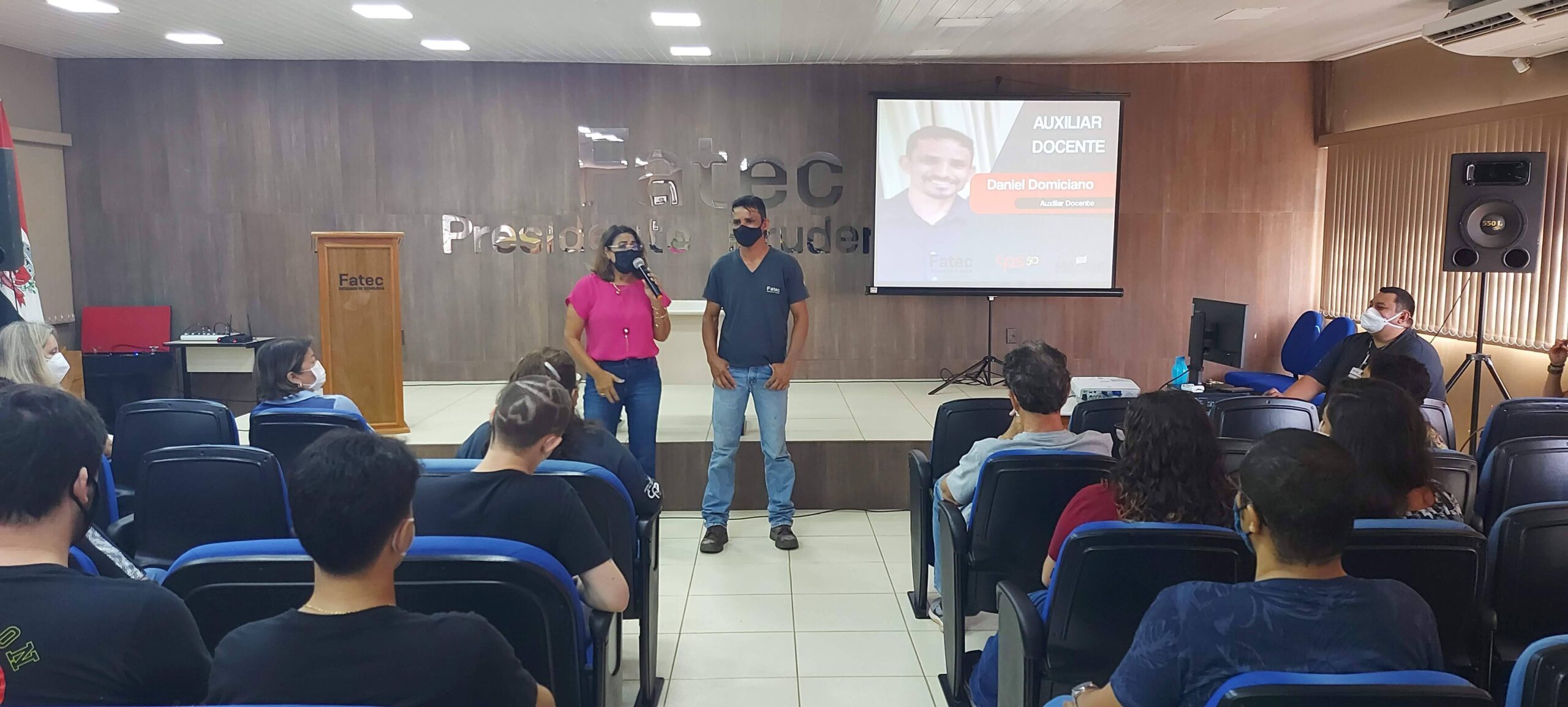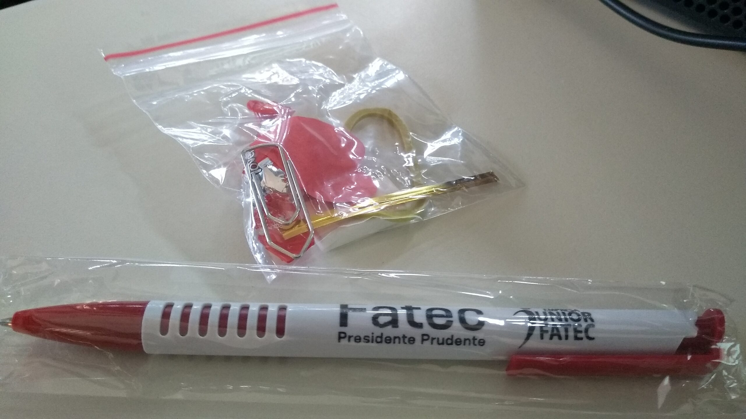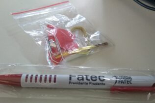 Todos os alunos foram presenteados com um mimo (caneta) personalizada com a logo da Unidade e da Empresa Jr. da Fatec Prudente.