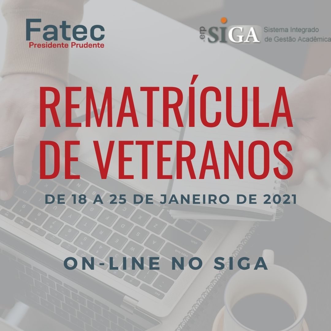 Atenção veteranos, o período de rematrícula será dos dias 18 a 25 de janeiro de 2021, exclusivamente ON LINE no SIGA.