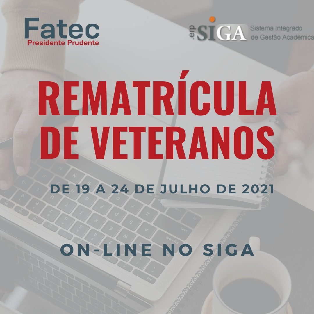 A REMATRÍCULA DOS ALUNOS VETERANOS SERÁ DE 19 A 24 DE JULHO DE 2021, DE FORMA ON LINE (NO SIGA)
