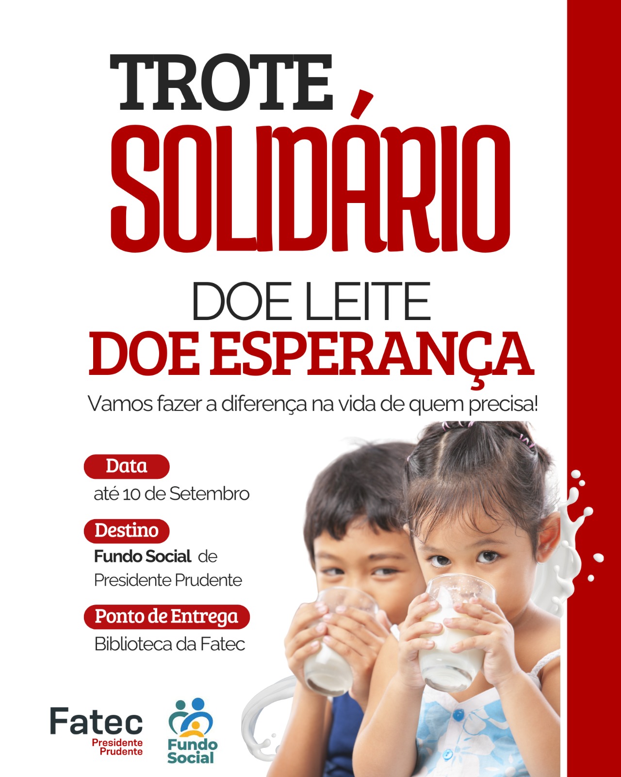 A participação é simples e colaborativa. Cada turma da Fatec-Prudente está convidada a se mobilizar e arrecadar o máximo de leite possível.