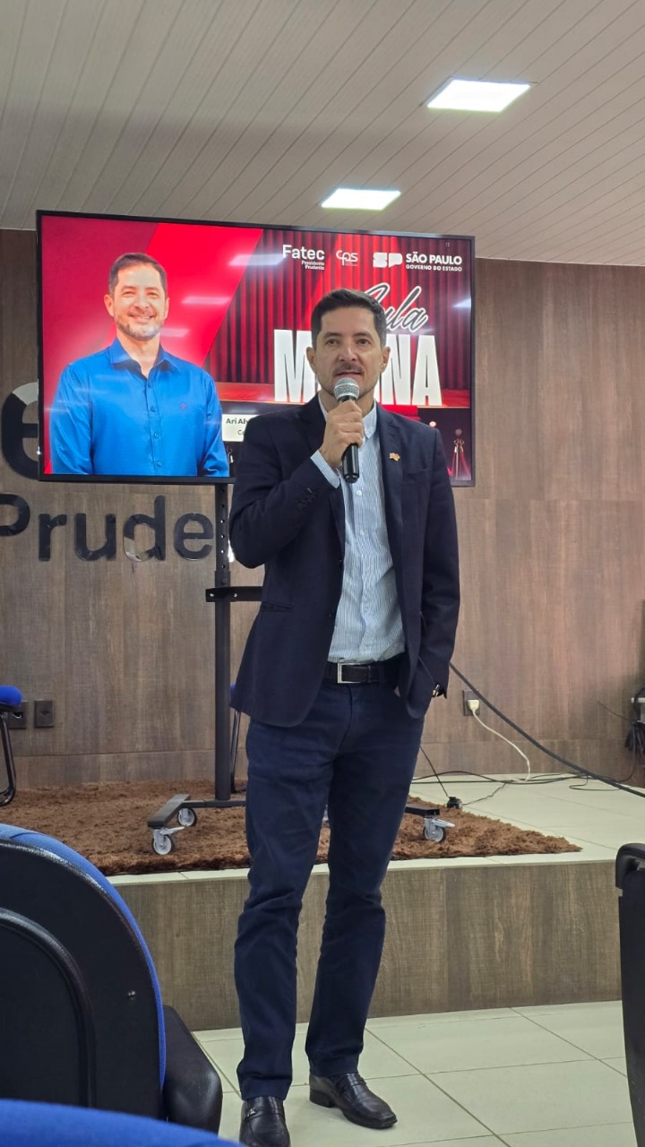 Nosso novo coordenador, o Prof. Dr. Ari Alves de Oliveira Filho, deu as boas-vindas, ressaltando a grande escolha que cada um fez ao optar por um ensino público e de qualidade. Em seguida, a Profa. Alessandra Cipullo apresentou os departamentos e toda a “família Fatec”.