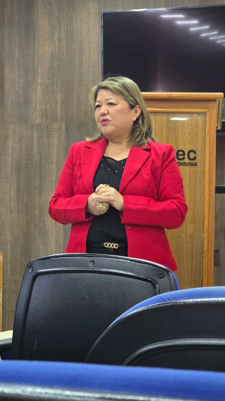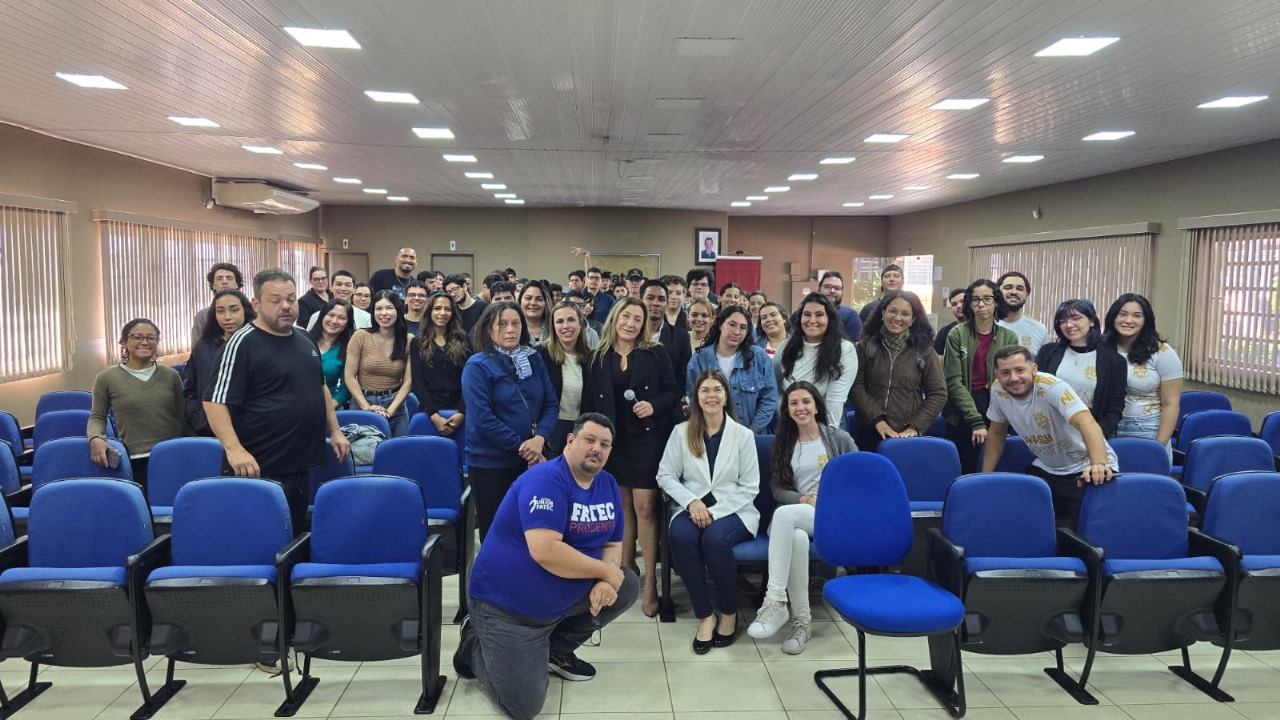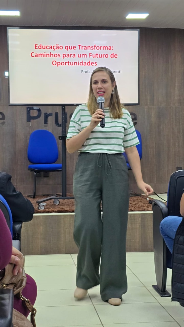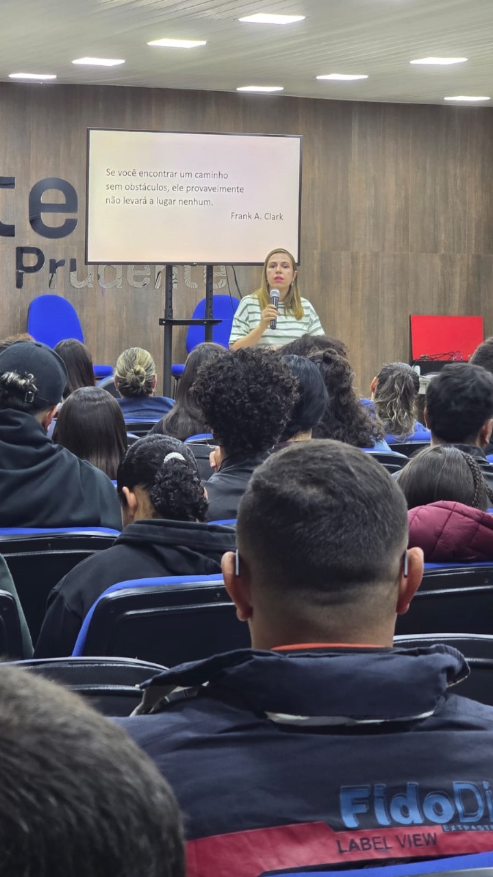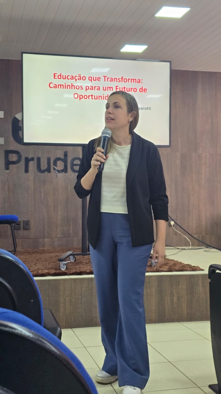O bate-papon ficou por conta da Profa. Juliana Casarotti Ferreira dos Santos, que realizou uma palestra com o tema “Educação que transforma: Caminhos para um futuro de oportunidade”, inspirando todos os presentes.
